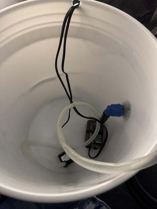 My automated watering prototype is almost done! Currently have drip irrigation connected via a 5gal bucket reservoir with two pumps inside. One pump to deliver water to the plants and the other for recirculating the water in the reservoir.