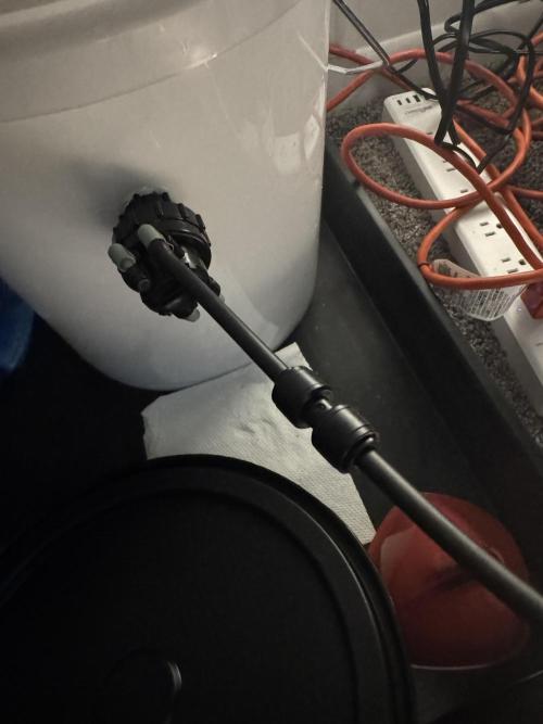I also found out that there are these sweet quick connectors you can get from Amazon. The nice thing about this is that it makes my watering system modular. I can disconnect the tube feeding into the tent by pushing the quick connect tab and addressing the bucket without dealing with tedious connects and disconnects. All I need to do when I’m ready to reconnect the bucket, I just push the line from the bucket into the quick connector.