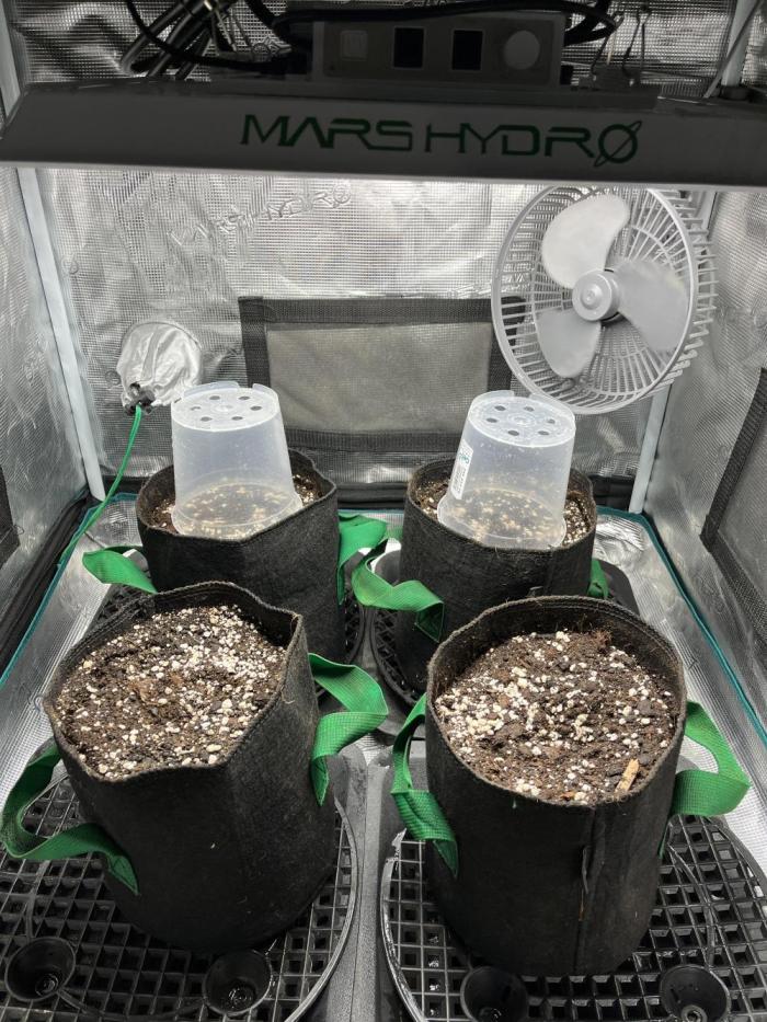 Top dressed with Guanokalong Black Pellets & Palm Tree Ash, Critical Orange Punch (front right) hermied