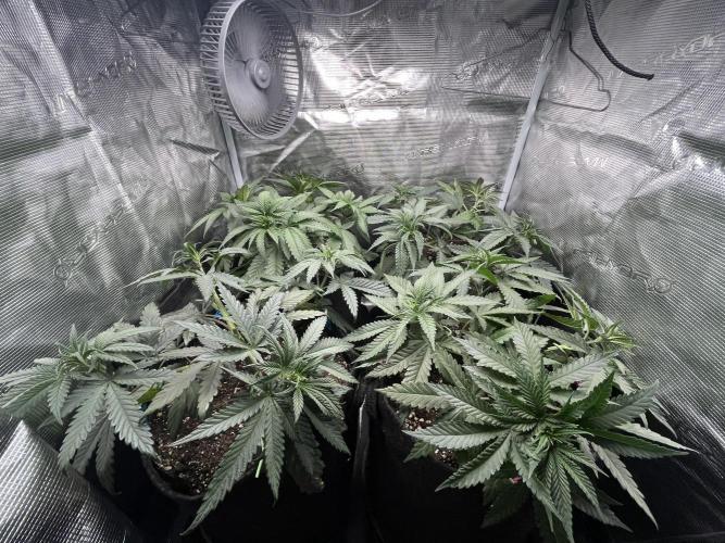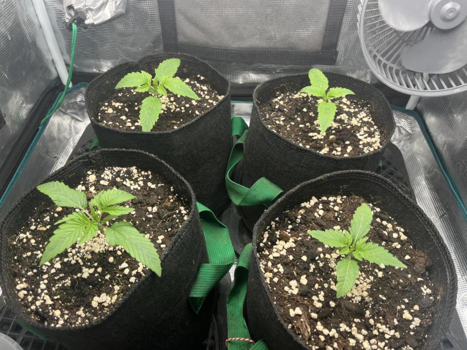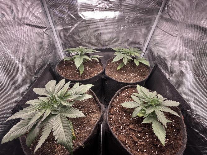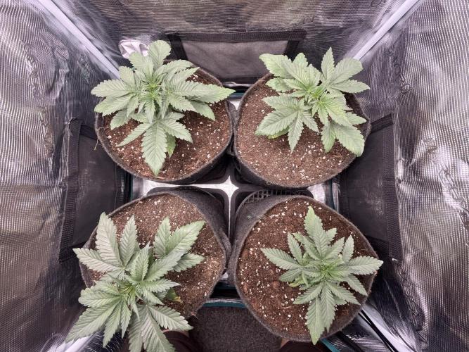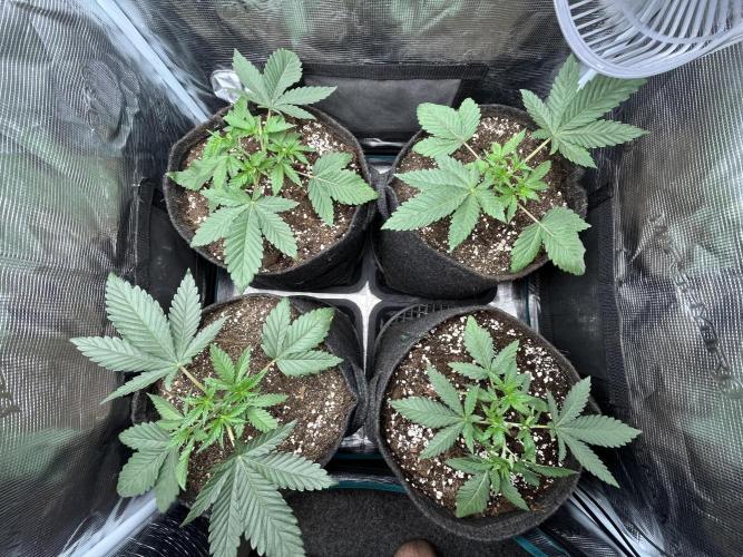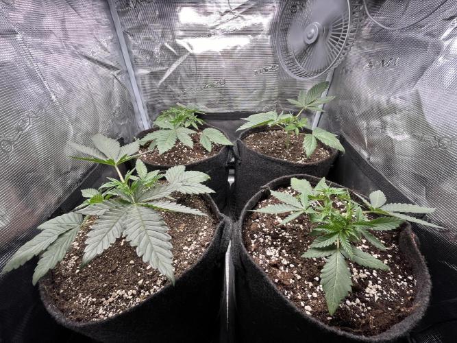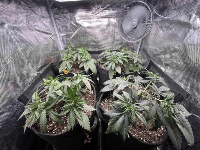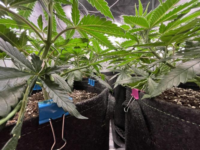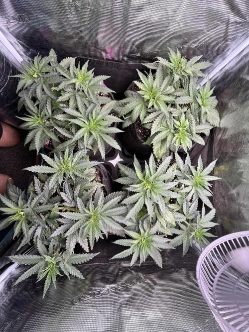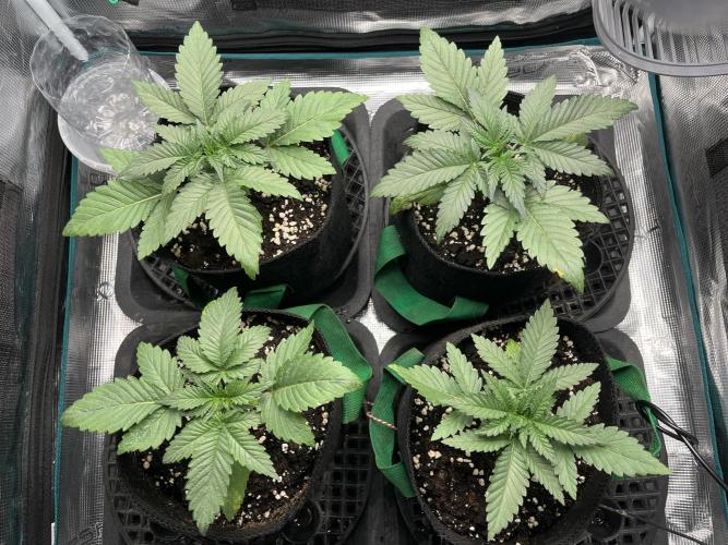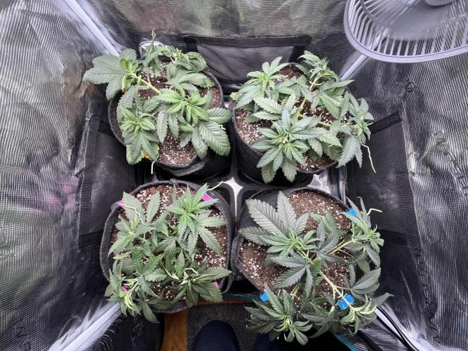 Defoliation on 20. and 24. Unfortunately split the stem on the front left plant, but shes growing strong