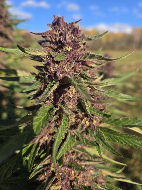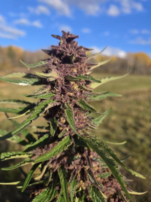 Ns-shore-grower Trichomes are just starting to turn from clear to cloudy, buds are swollen and dense, about another week or so and then harvest, plant grew absolutely huge, just over 7 feet tall. No nutrients givin. Grew in pro mix and composted chicken manure, watered daily through out the grow, now no water for last week until harvest. 0 mold or mildew. Very strong smelling plant.