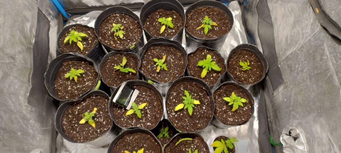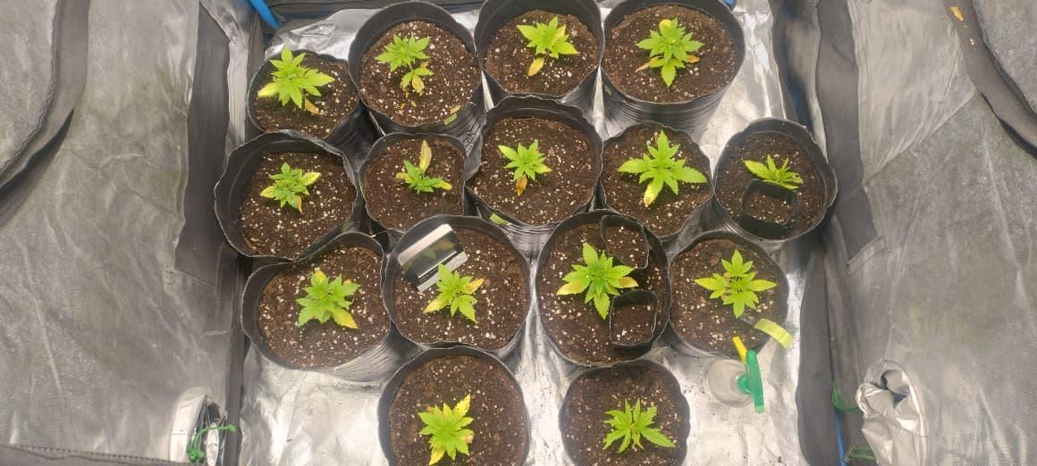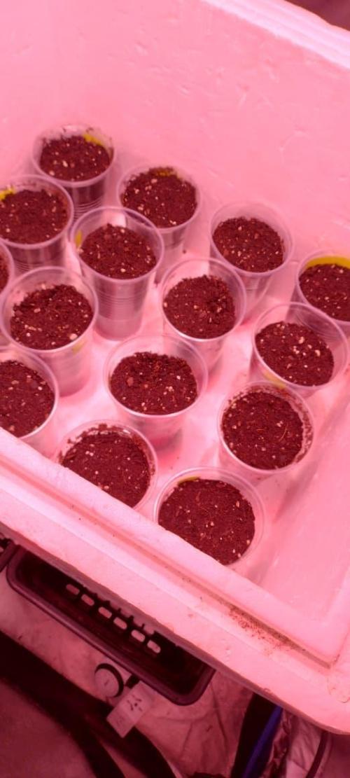 600ml sutrato ,100cc de coco plagron + 100cc de humus de lombriz al fondo de la maceta para que puedan comer pasados los 7 dias.