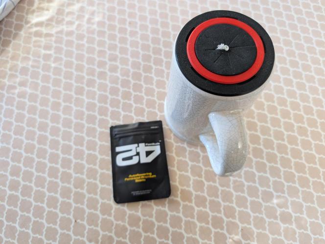 It is my variation of the Paper Towel method. I took an old beer stein and printed an adapter for an EVA foam ring. Then I added a wick and warm water. I take the seed, wrap it a a bit of paper towel and place it next to the wick. I add a transparent plastic cup as a lid and place it close to the radiator. Within 2 days the root grew around 1cm so I took the paper away and it's just the wick and the root inside the EVA foam ring.