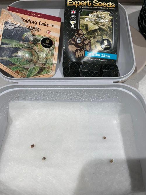 I placed two seeds of each type as a small “safety zone.” I’m using the paper towel method inside a Tupperware container, letting it rest in the tent. I’ll check back in two days. Fingers crossed! 😬🌱