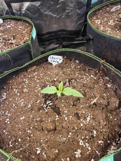 Sobald die Setzlinge gekeimt sind, bestäube ich ihr Äußeres mit MT Mix und Pflanze sie in ihre End Töpfe.