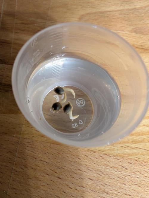 1 Tag im Topf = Nüsse alle geknackt und erstes Grün zu sehen