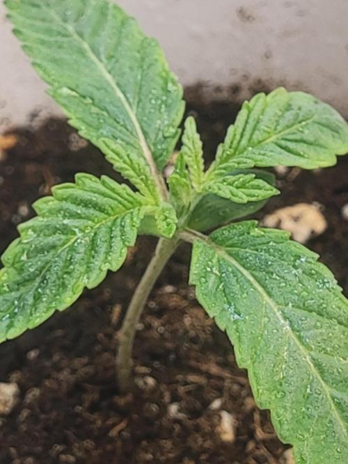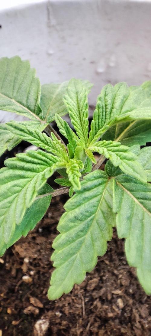 Al fina lajuste la distancia de la lampara pues las hojas se arrugaron o puede ser por sacarla de la cupula de humedad