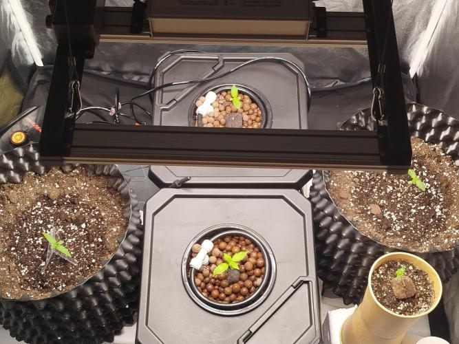 After that straight to their final containers, GG and Gorilla Skittlez in DWC while Milky Way, Orange sherbet went in soil airpots. For the last 2 strains I didn't have any more jiffys and they where buried in soil.