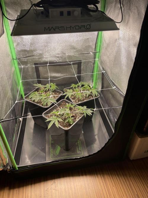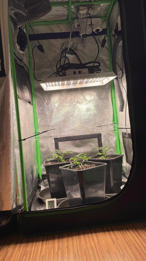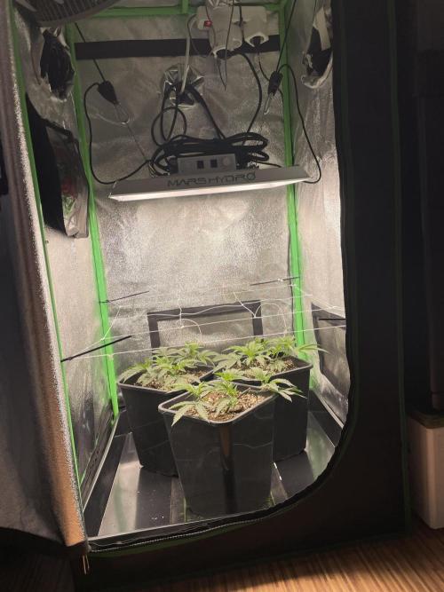 Whodeletti An Tag 15 gings in die 7l Plastik Töpfe mit Biobizz Lightmix, und ins 60x60x120 Zelt.