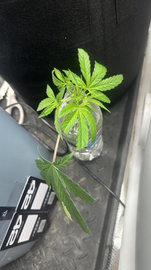 DabMansGenetics Getting there. Gave some light nutrients yesterday. Took a cutting of Humboldt dream and purple panty dropper for the breeding operation. Just put them in a water bottle full of light nutrient solution without root hormone and will change the water every day or two.