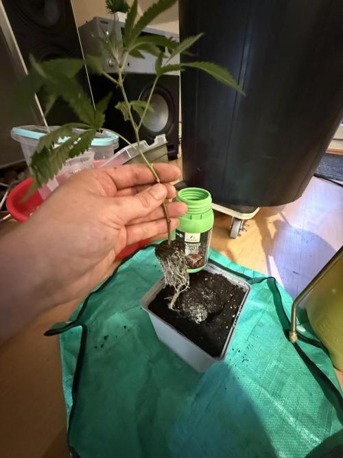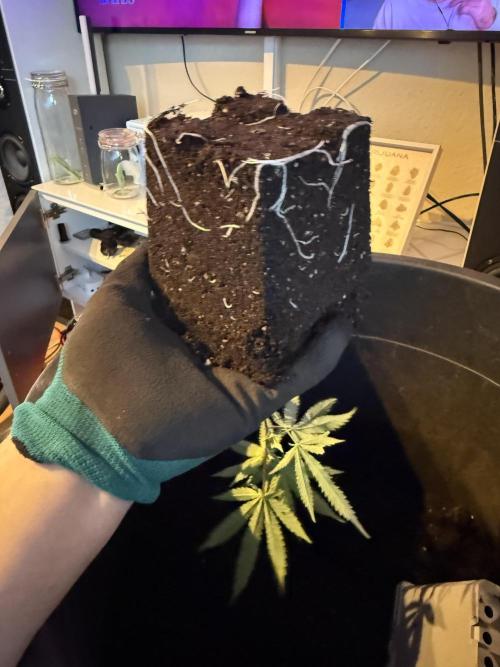 Mr_Santos Heute wird umgetopft! Die Pflanze hat sich gut an Ihre neue Umgebung gewöhnt. Gedüngt wird in der Vegi mit biologisch gedüngtem Osmosewasser. Jetzt heisst es nur keine Trauermücken oder Thripse bekommen !