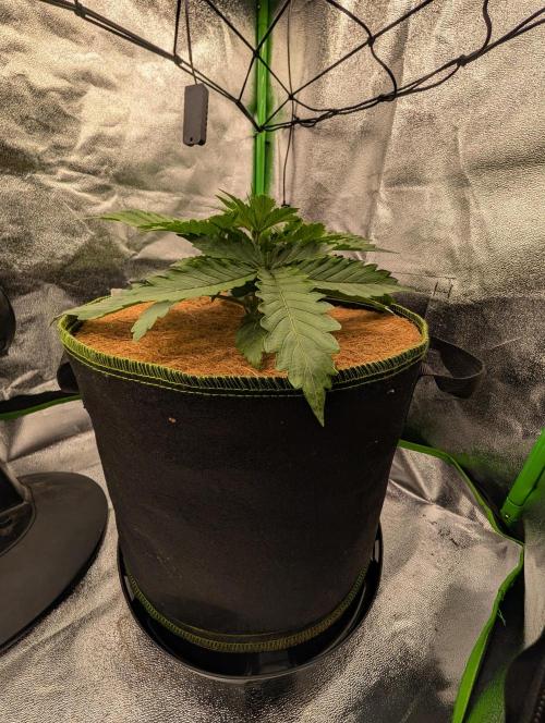 UrbanAgriculture A very easy, trouble free week. The soil has been fed it's weekly Biosys and and the self watering trays have been filled with dechlorinated water. The plants are loving the ecothrive living soil and the Gorilla Zkittles is looking like she's going to be a big girl. The Orange sherbet is roughly 5 days behind and in a smaller 3g pot but looks like she's going to get pretty big too. Light power has been increased to 50% and will be left alone until flower begins in a week or so. Any questions or comments let me know and I will get back to you. ✌️