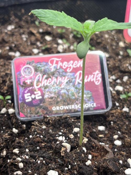 Hi Growmies, nun geht es endlich wieder los. Nach der Sommerpause passen die Temperaturen in der Wohnung wieder. Ich habe mich wieder für GrowersChoice entschieden. Diesmal für Frozen Cherry Runtz. Gekeimt hab ich den Samen im beheizten Gewächshaus und hab dann direkt in 25 Liter gesetzt. Außerdem habe ich ein bisschen Klee eingesät. Ich bin sehr gespannt auf den Grow und halte euch auf dem laufenden.