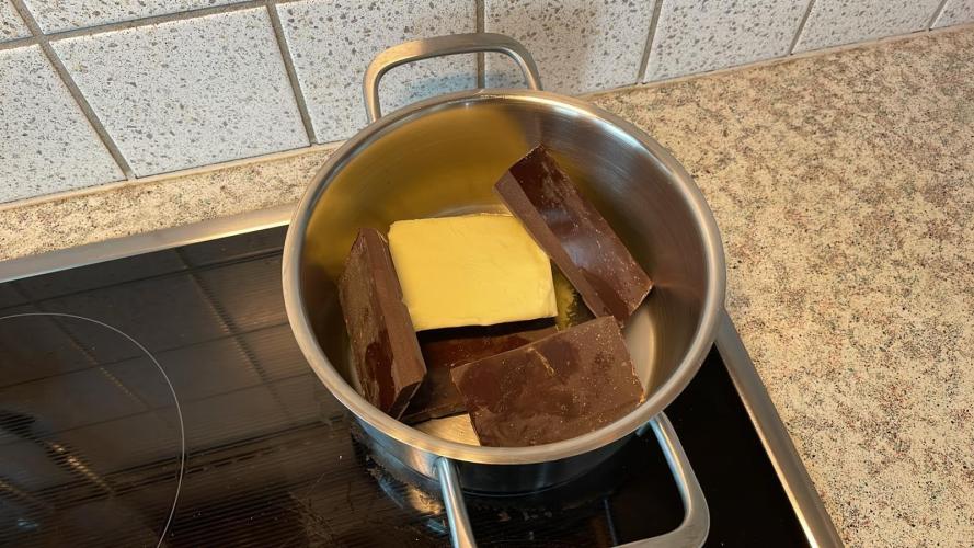1. Butter und Schoko gemeinsam langsam schmelzen lassen