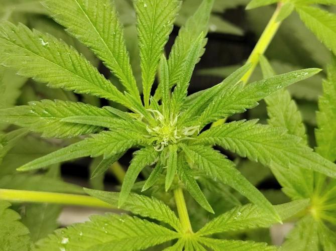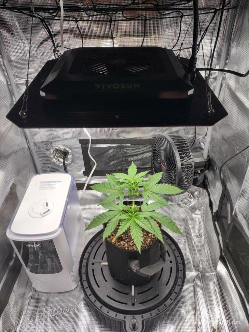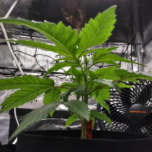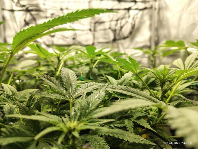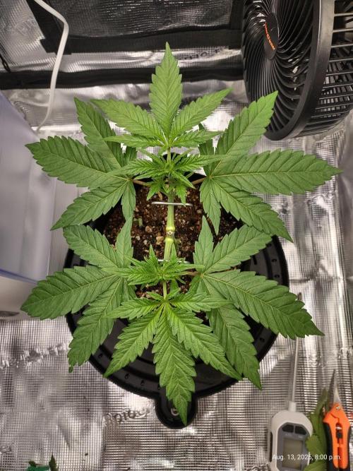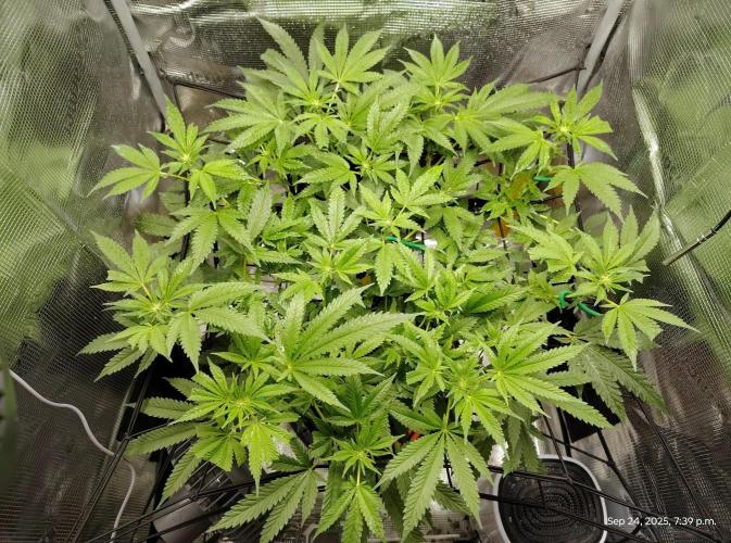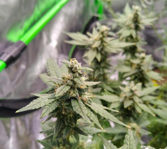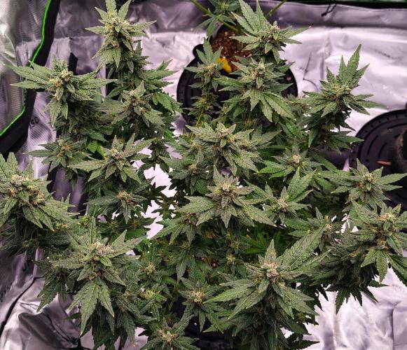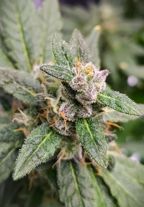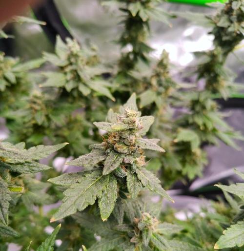 About a month left until harvest. It's been 3.5 weeks since pollination and standard maturation time for good seed viability is usually about 8 weeks. This is why her buds are small but rock hard to the touch. Despite being pollinated, the flowers are still smothered in trichomes.