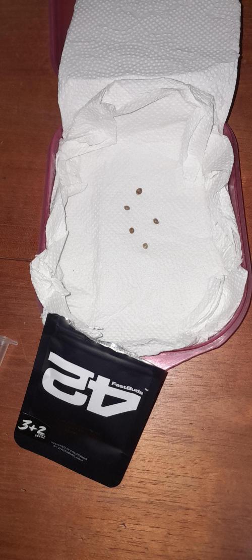 Jardineiro_Br As temperaturas estão subindo por aqui , por isso optei por uma variedade automática rápida e esta variedade nova parece muito adequada para minhas necessidades de tempo. Começamos dia 31 de outubro, direto para o papel umidificado a temperatura está cerca de 27 graus pelo dia e 24 a noite no ambiente de germinação.