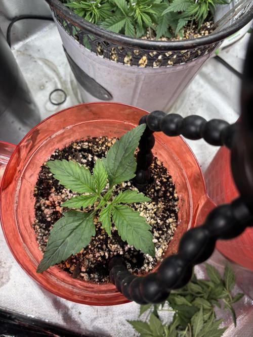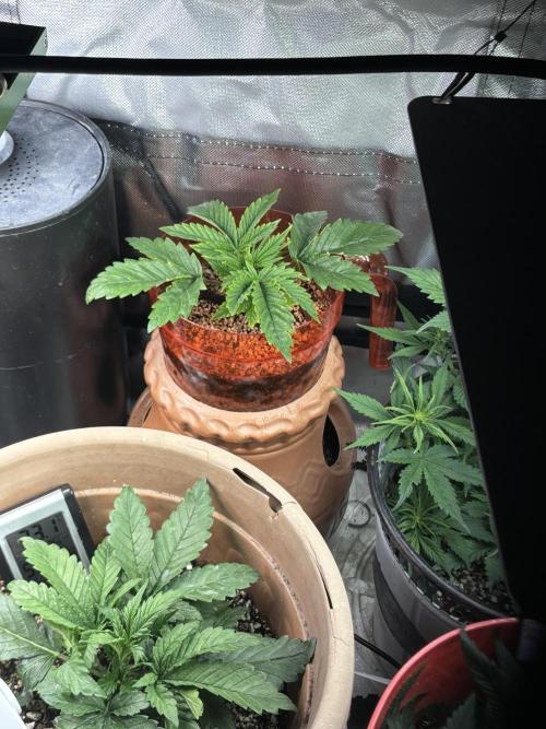 ChrisNbran I wasn’t gonna do a diary on this chick cause I was just experimenting and trying new thangs but it’s turned out pretty good and I wanted to share it I seen a guy stack pots to let the roots keep growing down suppose to keep the plant vegging for longer to get bigger idk so I rounded up three pots and started stacking I looked at the bottom of the first one and there was roots showing threw the holes so I stacked it once then again I also watched a guy mainline or manifold a plant so I waited until she had five nodes and cut off the fourth and fifth one then clipped the bottom leafs leaving the 2 nd and 3rd nodes only so she grows out in four different directions it worked out great I tied all four limbs down and lst’d her and it’s actually working and turned out good which is why I wanted to share my experience with growdiaries and fast buds I’m excited to see how the grow goes until next time happy growing