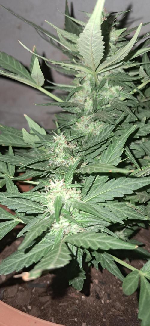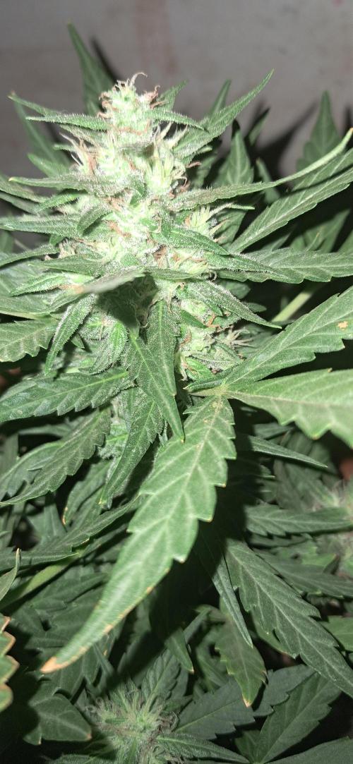 The stage of your plant she looks lie she's doing very well and no need to feed anymore she's maybe 2 weeks from harvest. if you taper off the feeding then you should start to get some fade on it depending on the genetic. I do however believe in using slightly colder water towards the end. to mimic nature and the cold rains going into winter, i thin that help trigger the senescence process, which is what you want.