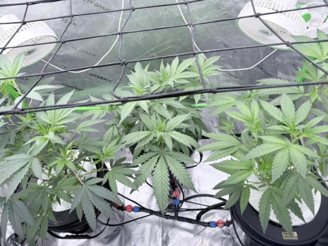 ATLien415 These girls were all planted together (from left to right is Larry, Spanish Moon, then Grape Gas). The Spanish Moon is from seed from the breeder while the other two were clones from a tissue culture which were rooted in rockwool/coco due to an error...this lead them to having a stressful time initially but all is well and we are on to flower. Silica from Kosher Nutrients, the entire Heavy 16 lineup per need, the entire Grow With Grease lineup per need, either HOCl or CannaGuard-Pro per need, CleanKelp from Bloom City, Signal from TPS, Recharge and Great White for inoculating, Foop Exotic Sugar blend for carbs, CALiMAGic, and some professional strength dual component pH up/down. This all leads itself to a sterile to living solution flow week to week, with many decisions to be made on the fly.