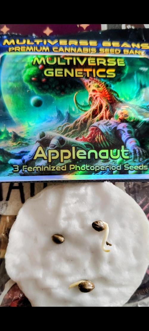 JolliGrowz27 Cotton pad and baggie method. Sprayed and not sealed. I placed it in a black sock and put on a windowsill for warmth. I sometimes place it on top of my grow light for warmth. 2 have germinated so far, 48 hours in the baggie. The 3rd seed cracked open so I'm hoping she will be sprouting too. I will give em 6 more hours then I will be putting them in Ocean Forest potting soil. No nutes yet until next transplanting.