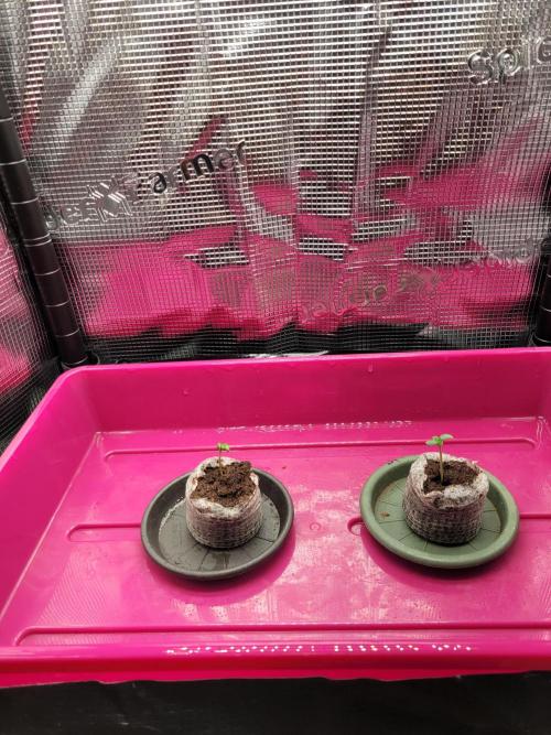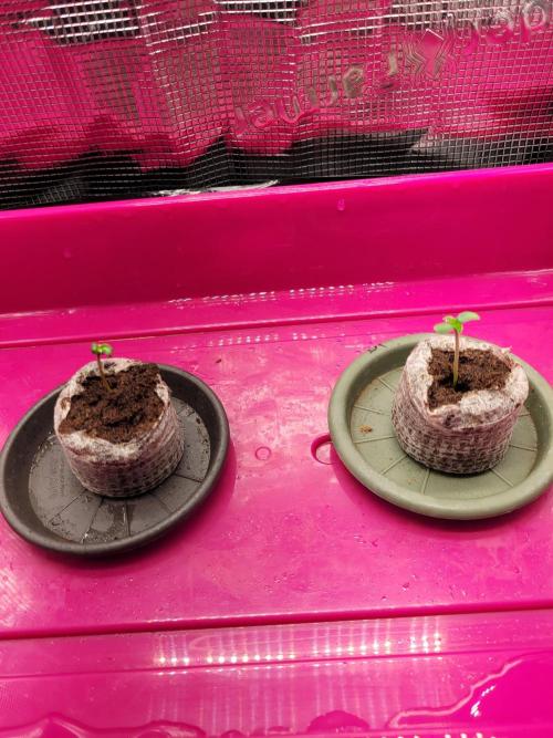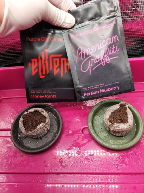 i started 2 seeds here, Honey runtz left on black and the persian mulberry right on green.