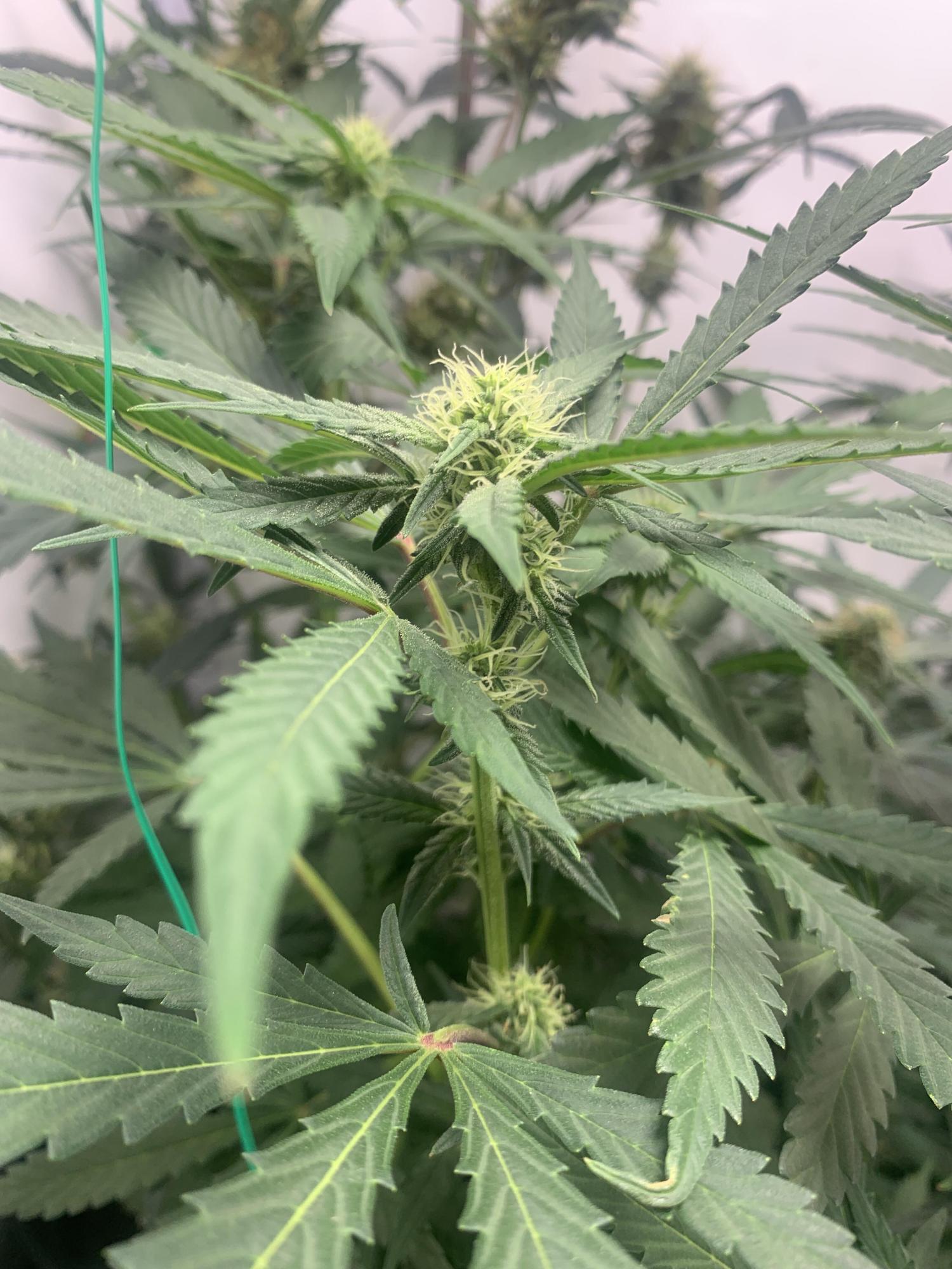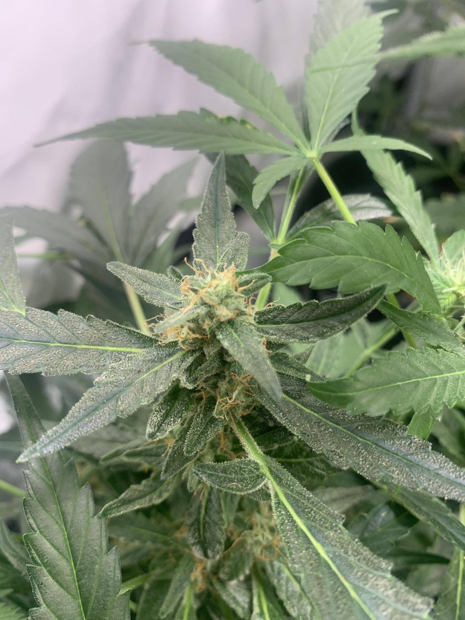wolfvbstarted grow question 22m ago My Blue cheese F1 is acting weird she is so compact and 33cm tall I did not top her, but no a side stim is going for a stretch. Also her leaves worries me a lot of 3 fingerd leaves. She's a bit bouji