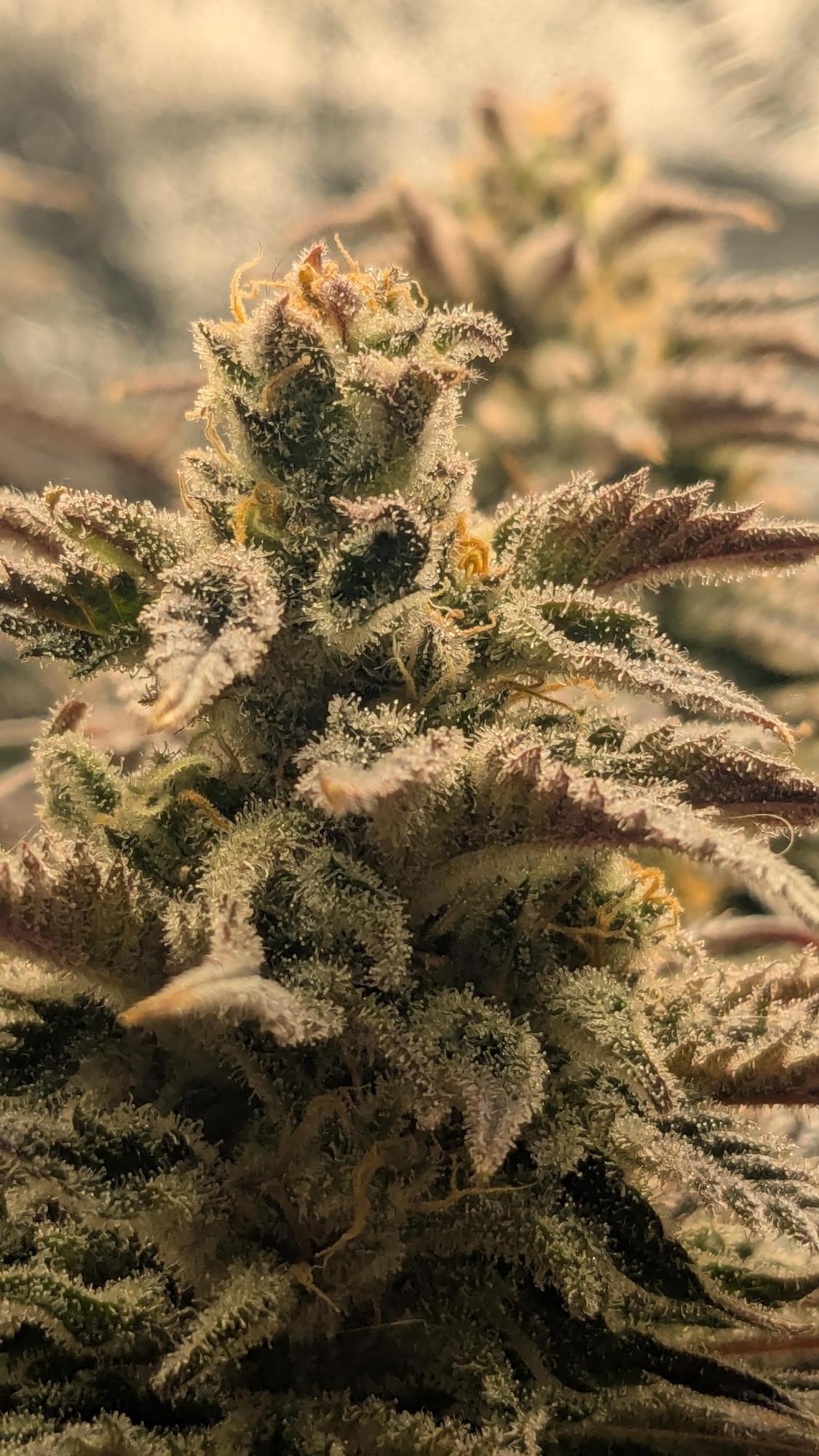 Terp_Turkey These guys got lucky and caught some VPD by coincidence this week. It's been warmer and raining so they got some humidity too. Saw that some bug nibbles on a leave so I sprayed the shit out of them again with lost coast plant therapy. Thinking of tying down the hive plant this week because it's like 6 inches taller than the maple root. Those plants are doing really well in flower in my other tent right now and I should only have a few weeks left on them so I'm getting excited. I'll try to figure out another way to take pictures so they don't look like this hopefully soon. Sorry about the lines lol.