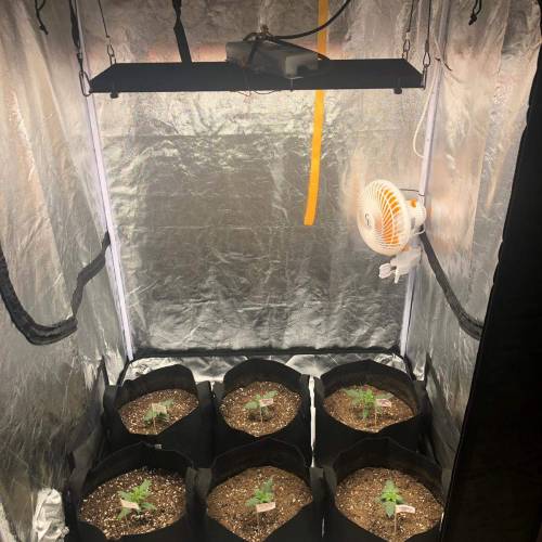 I am using Roots Organic Green Lite soil. I mixed 1 bag of soil with 5 lbs of nature's living organics autoflower super soil mix. I put 3 gallons of this in the bottom and sides of each 5 gallon pots. And filled the rest with plain roots organic green lite. If I see signs of deficiency later I will top dress with some happy frog dry organic fertilizers. I am using an HLG 260 watt quantum board light. I didn't measure but I'd guess it is 2-3 ft above the canopy right now. I am watering with well water ph'd to 6.5. I used some plant success soluble fungi and later I will also treat once each week with mammoth p. This week I am going to be watering once per week with some molasses mixed into my water.