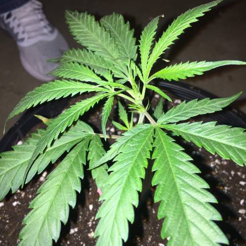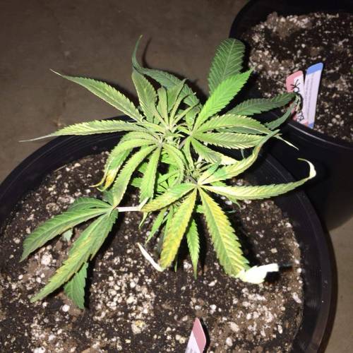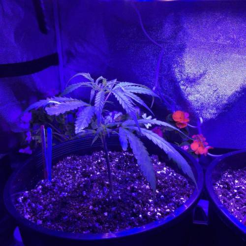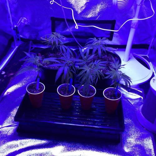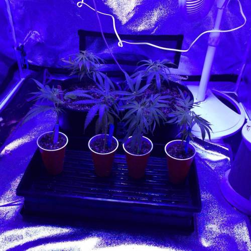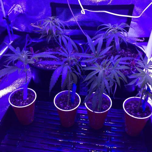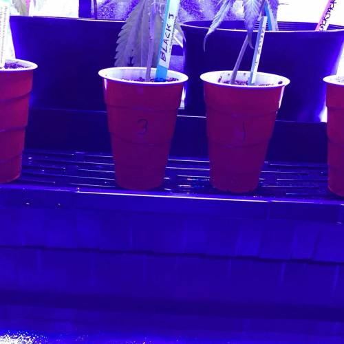 The plants are growing happily again after being burned. We also added 4 more plants! We added two more Black Jacks and two more Blue Dreams. We planted the new clones in red solo cups, party time! No nutrients yet, we are thinking we will start Fox Farms next week. We also FIMd the original two clones today. We numbered our six plants 1-6 with the oldest two plants being #5 and #6. I am going to keep this one week one until our new babies get to week two and we will stay on track from there.