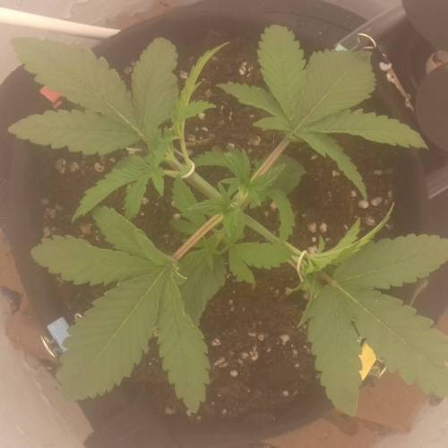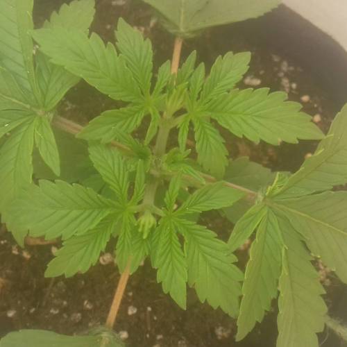 RedEyeJedi420 new nodes starting to grow back after topping going to wait for them to grow out a bit then proceed with 4 way lst, slightly concerned about deformed leaves not sure whether it's a nutrient problem or genetics or what? Thought it may be a lighting issue but 5.5" isn't that close for cfls never the less have brought them up a bit to see how it gets on! otherwise looks green and healthy too me