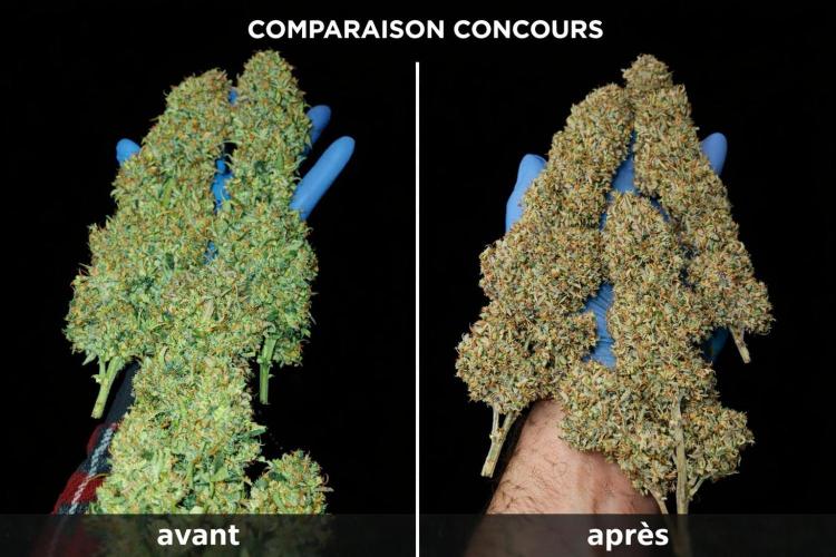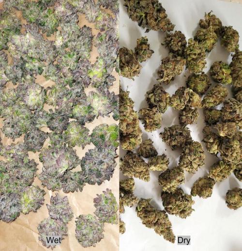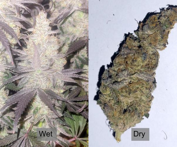 Upload an image (or a set of images) showing your bud right after harvest (“before”) and the same bud once fully dried (“after”).