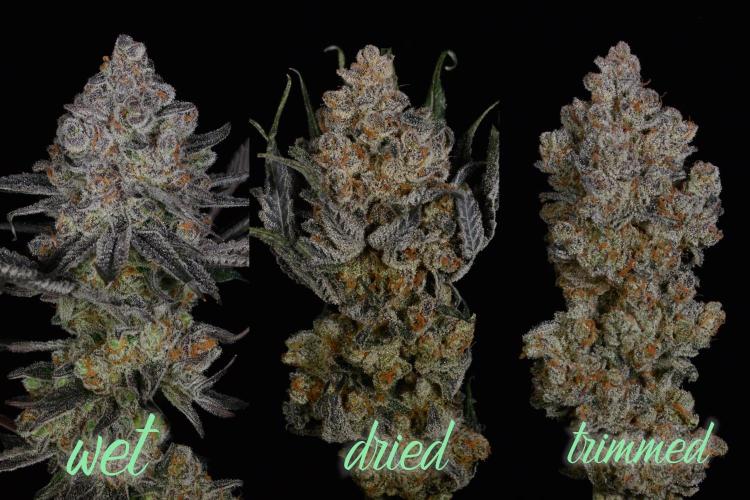 Upload an image (or a set of images) showing your bud right after harvest (“before”) and the same bud once fully dried (“after”).