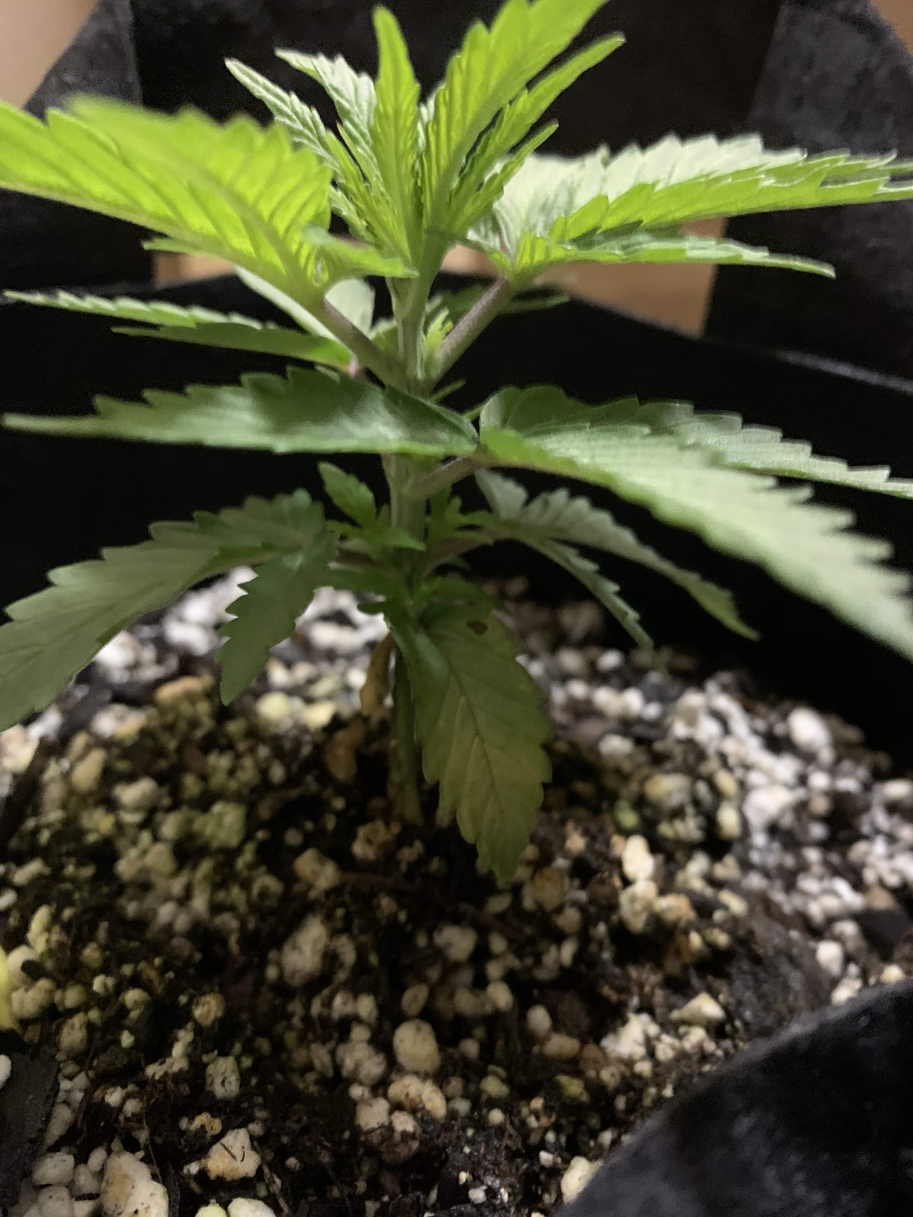 I personally wait till my plant reaches 5 nodes in height before topping it down to the third node. This helps ensure a strong root system before putting stress on the plant. Grow on! 🤘😤