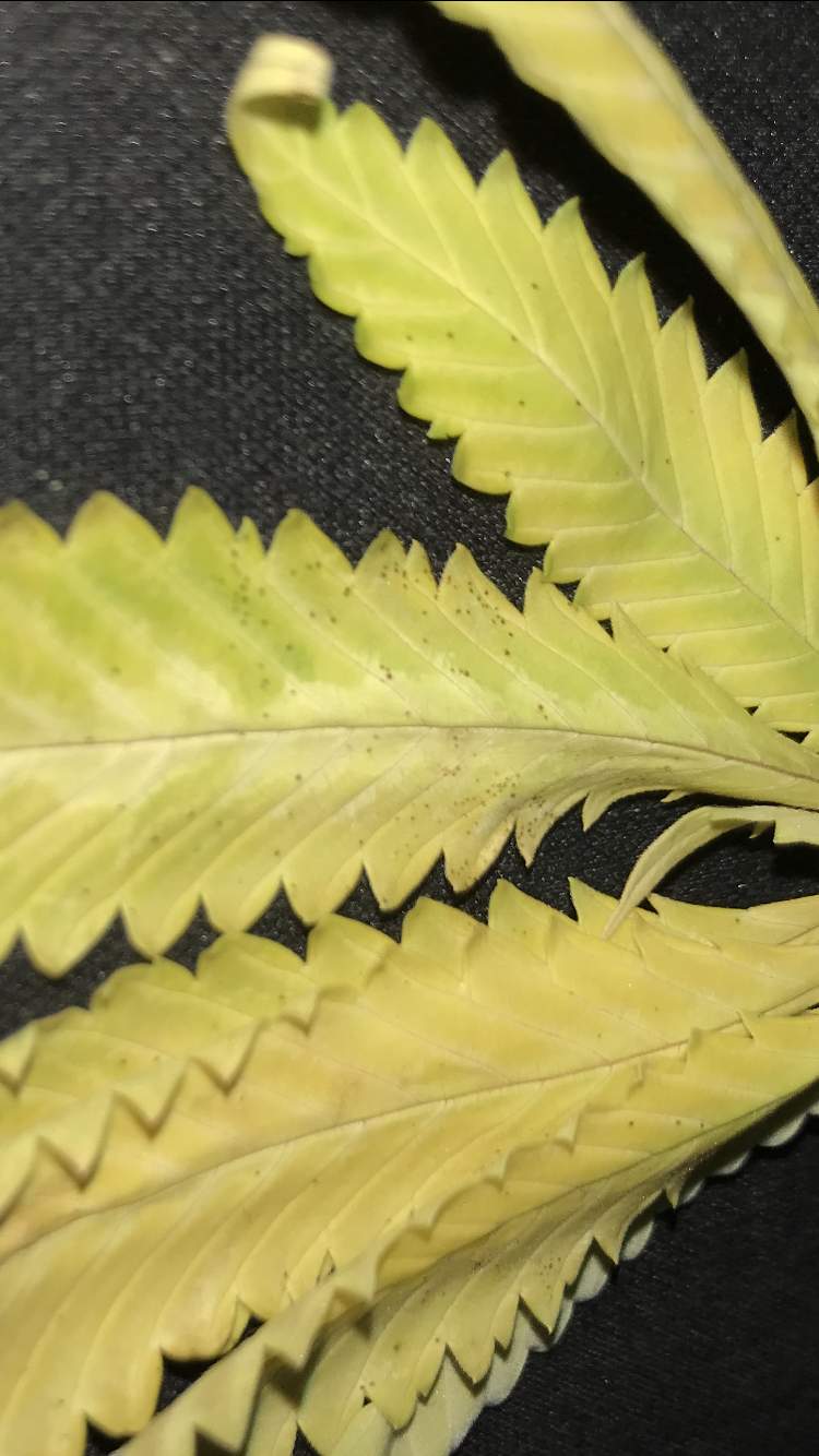 tiny black dots look like pests , maybe even spider mites, check your leafs if that's the case and they all have these dots then you should use bacilus thuriengiensis to battle the outbreak. if you have enough time until harvest you should might save the crop. Hope this helps ! 🚀