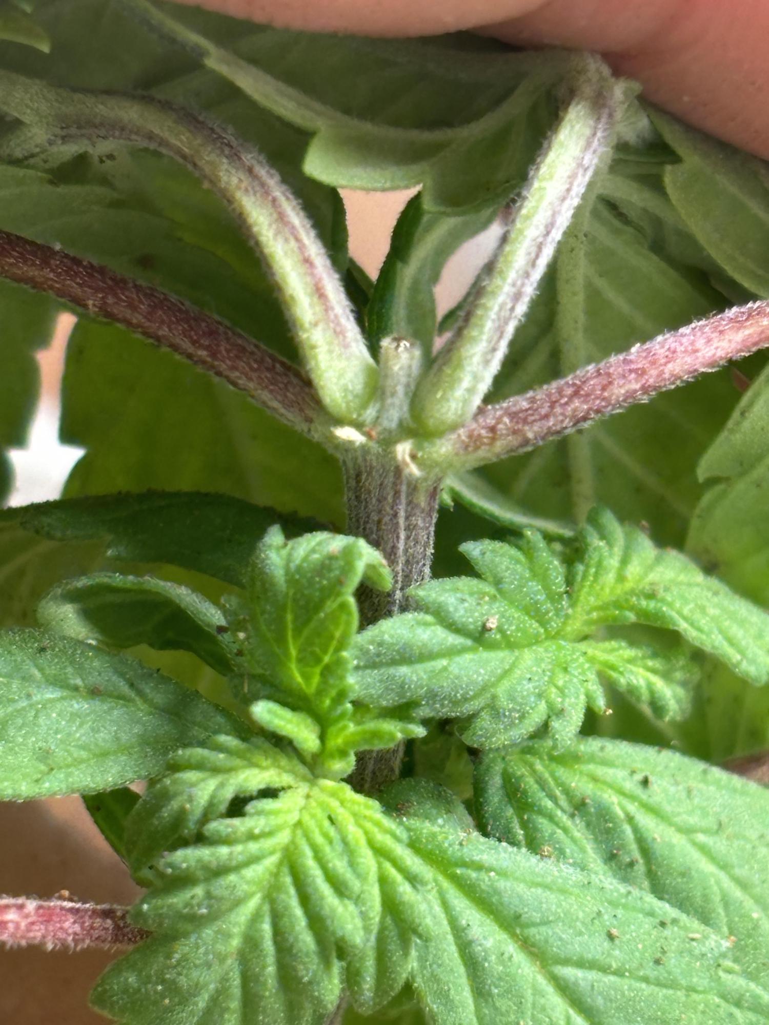 Are these little white growths a good sign? I can't tell if it is the beginning of a new leaf or if it's a sign that it might be time to start flowering soon. Sorry if it's a dumb question but I'm getting to the point where I think I need to go to 12-12 and want it to go smoothly
