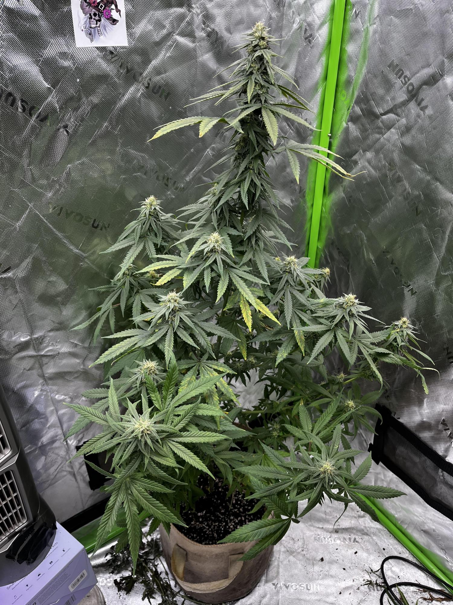 MistaOCanswered grow question 5mo ago Your plant definitely looks like it still needs at least four more weeks to fully mature. The buds are not yet fully developed and haven’t entered the ripening phase. The yellow leaves with brown spots are signs of a calcium and magnesium deficiency. Before adjusting anything, make sure to check the pH level of your water. Either the pH is off—preventing proper nutrient uptake—or your plant simply needs more calcium and magnesium. If you’re confident that the pH is within the right range, then it’s time to take a closer look at your calcium and magnesium feeding. Wishing you the best of luck and lots of success over the next four weeks.