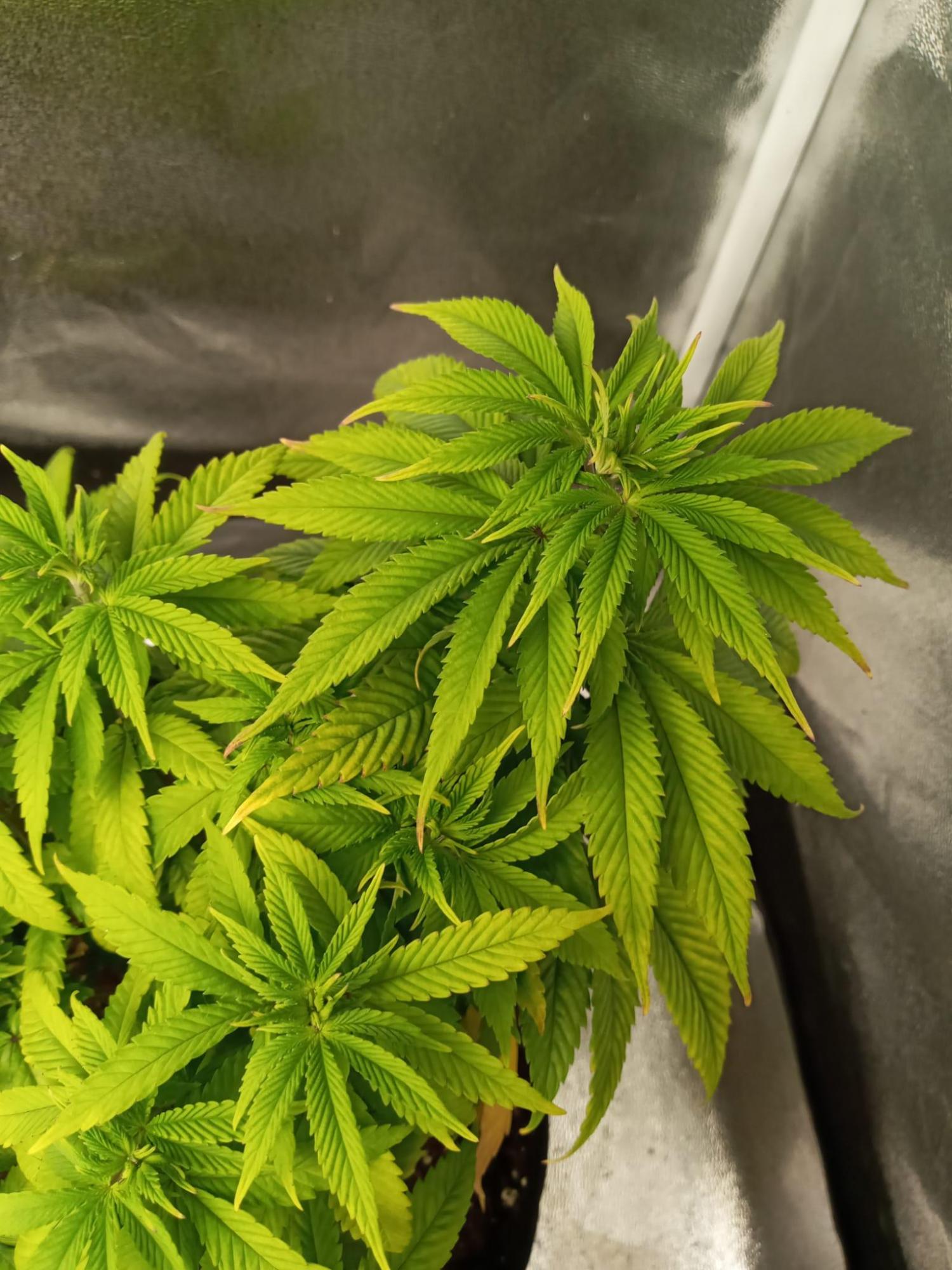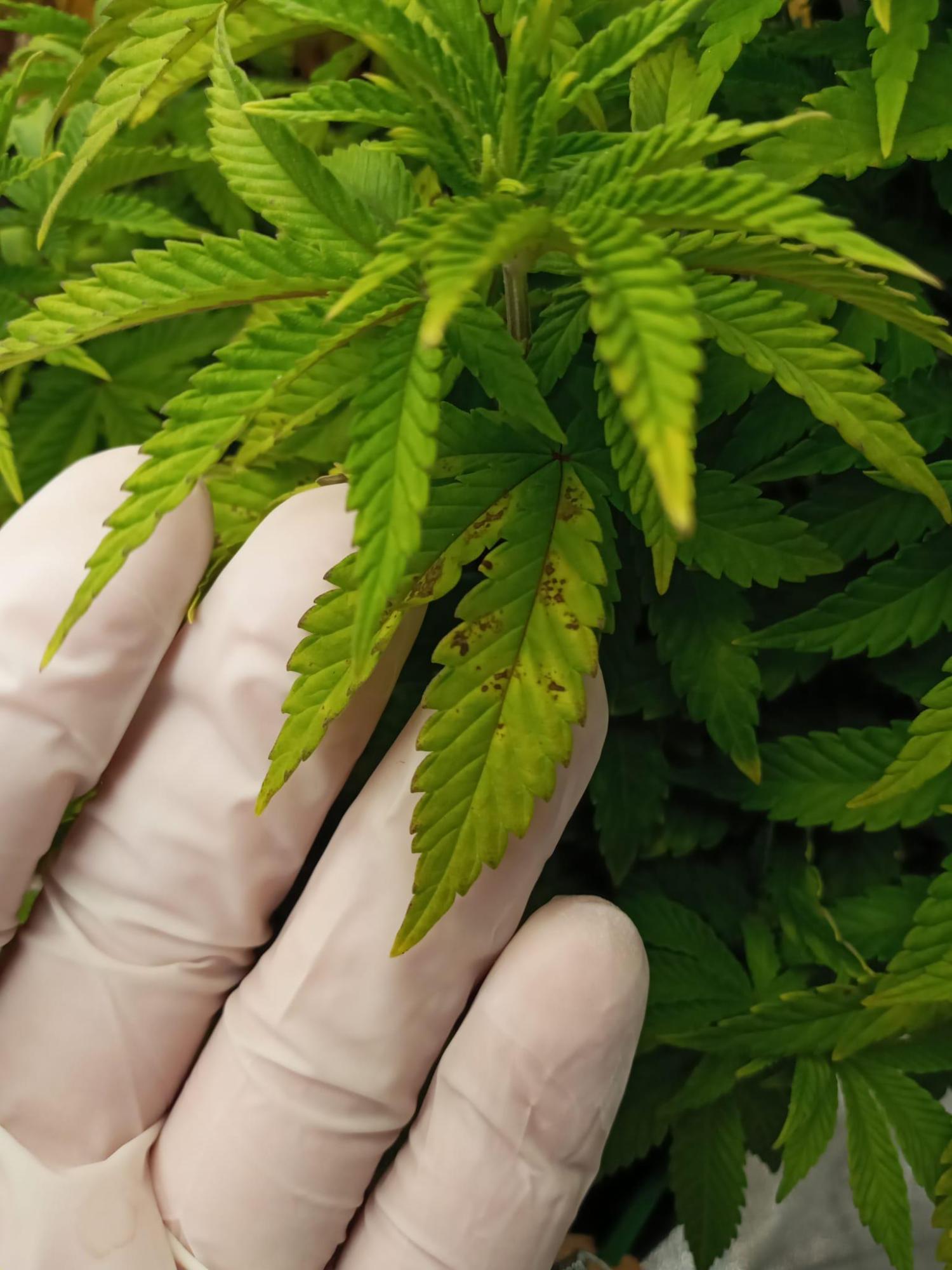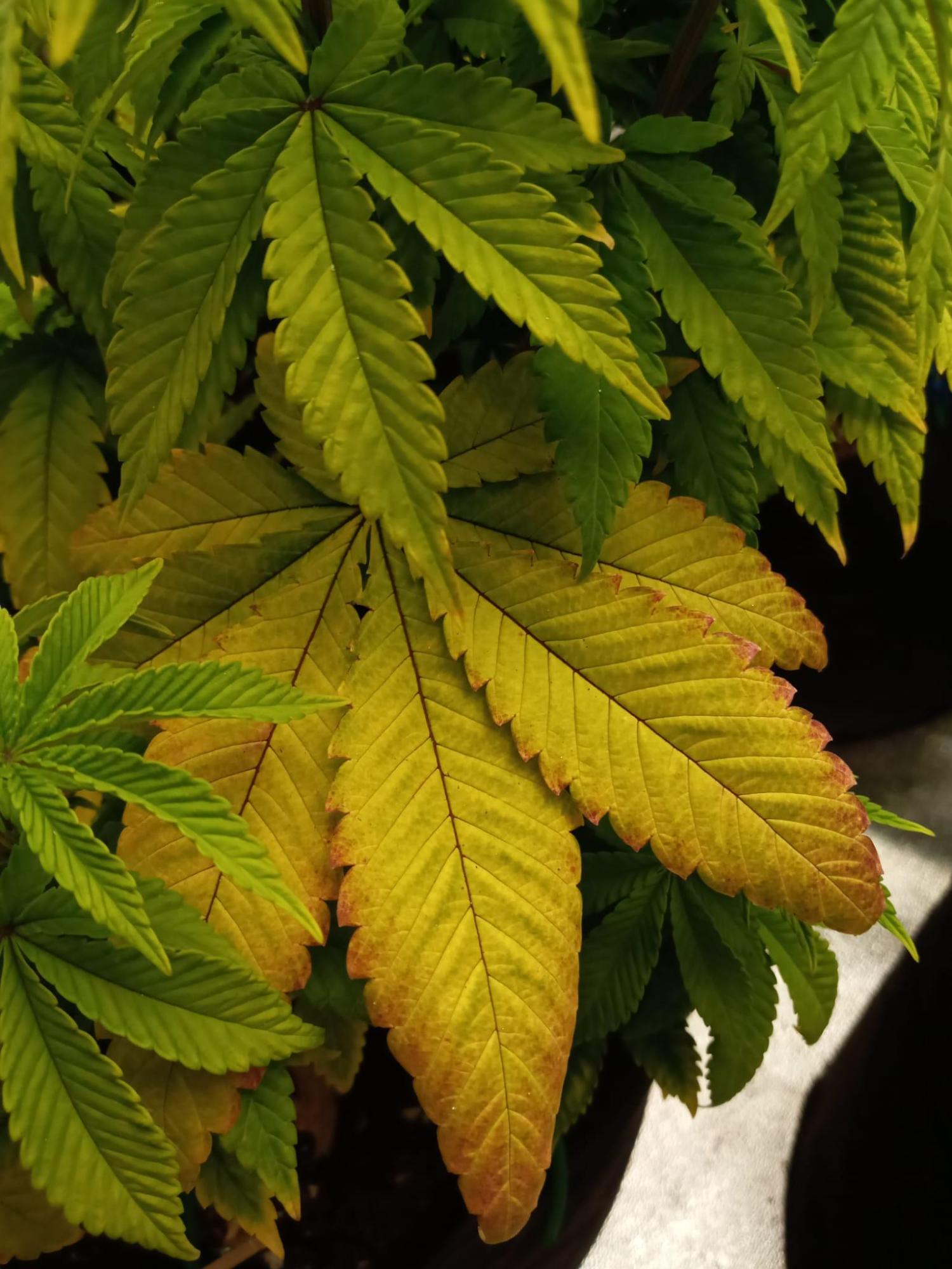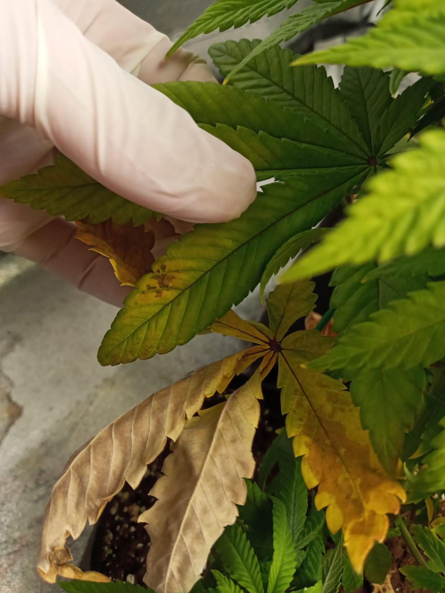 If there is a deficit then allways the lowest and smallest leaf is the first which shown signs of losing colour and get cannibalised by the plant and fells off .