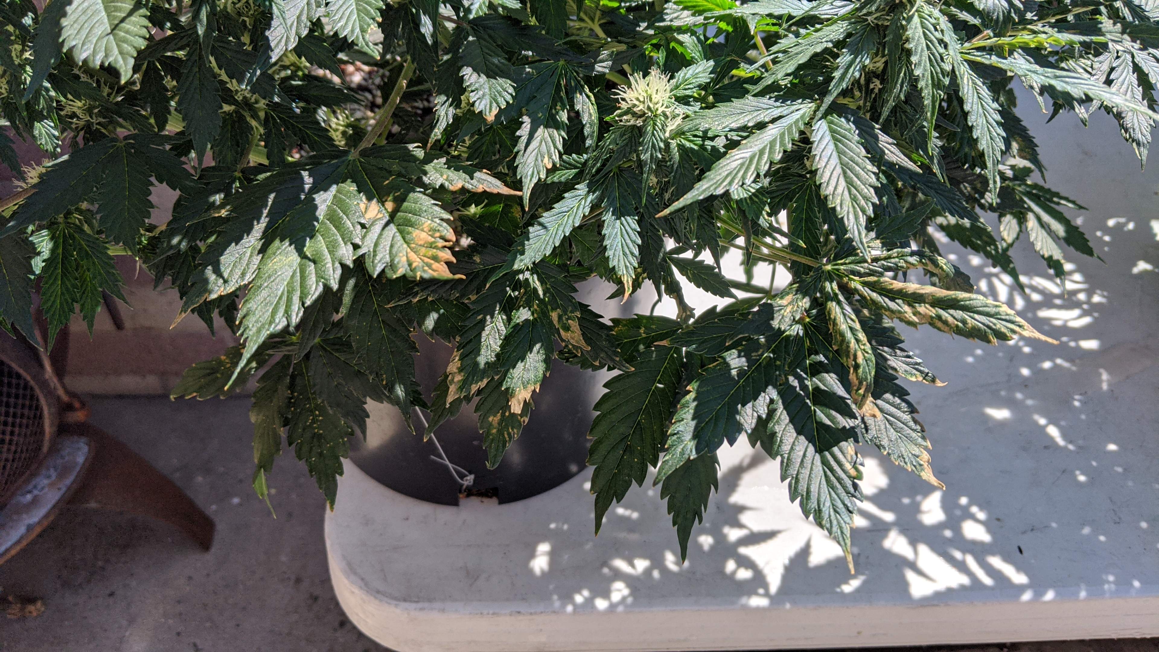 5sackanswered grow question 6y ago Potentially an Issue with recent Phosphorus uptake coming into the Bloom stage. Excessive amounts of Phosphorus is relatively common especially during flower, Symptoms show as micro-nutrient deficiencies in the form on Zinc & Iron. ( Which personally was my 1st guess after taking a glance ). With your stable pH, Phosphorus availability increases & lowers Calcium & Magnesium's availability within the medium. Attempting to Leech out the Phosphorus is not personally recommended as it can change its form and combine with Calcium to create Insoluble Compounds. Try raising your pH levels and be sure to Leech very well with plain water a few days before harvest. Best of Luck!!