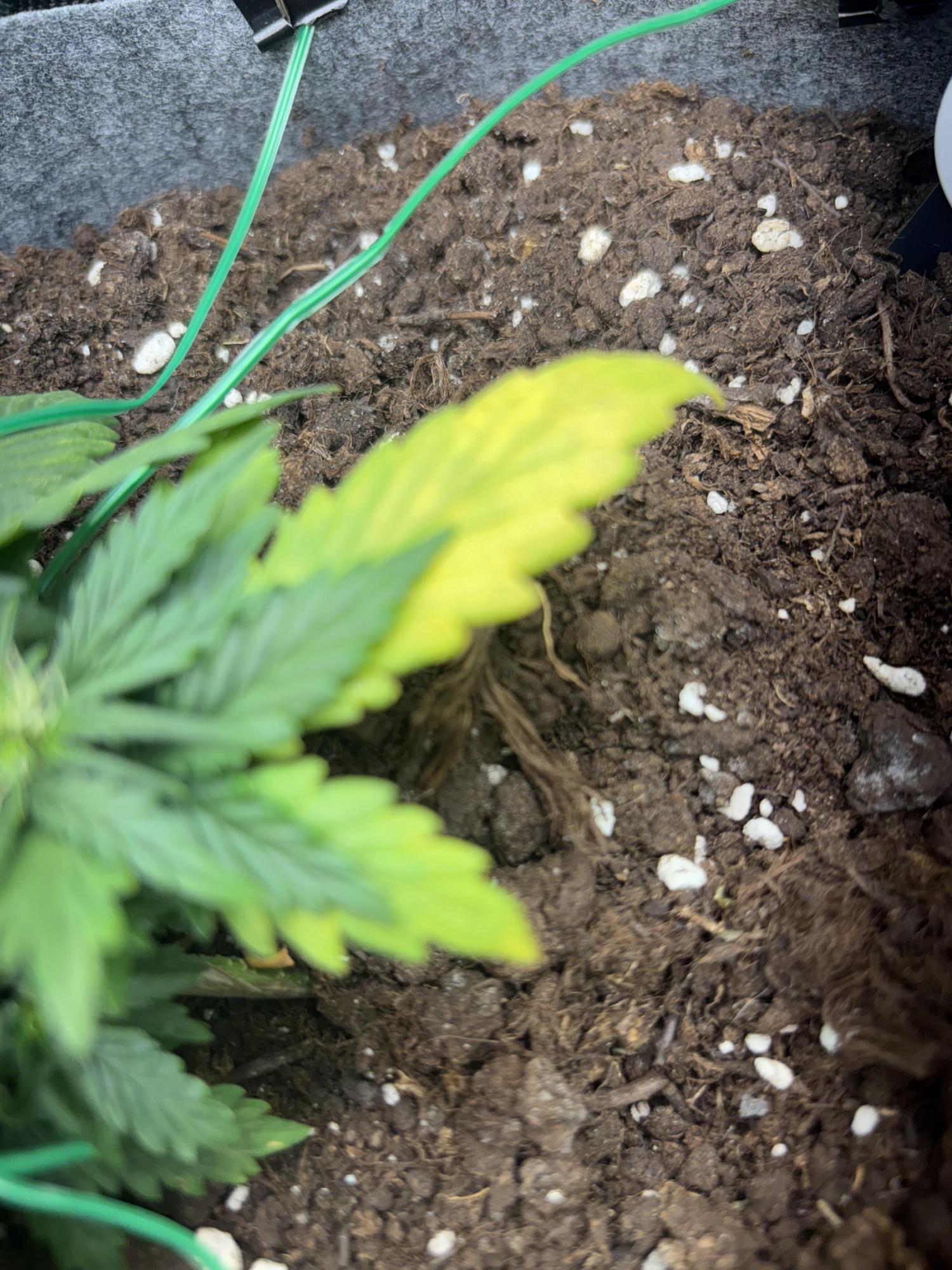 Water solution ph5+1000ppm, run off7, 🤦♀️😳PPM @2400, flushed ph6 runoff6, ppm 998, next watering ph5,5+1000ppm but runoff8😳🤦♀️ppm1489. Tested soil Ph5 then tested pot(don't ask) PH14🤯 how 2handle the PH? She is getting yellow ☹️stupid fabric pot😤 potassium defi? To low PH?