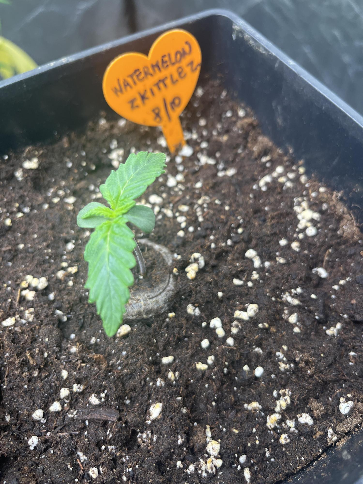 Vegging consist of germination to sprout to adolescence of the plant. Then flower kicks in. I'd say its still a sprout as its not put on many adult leaves or nodes.
