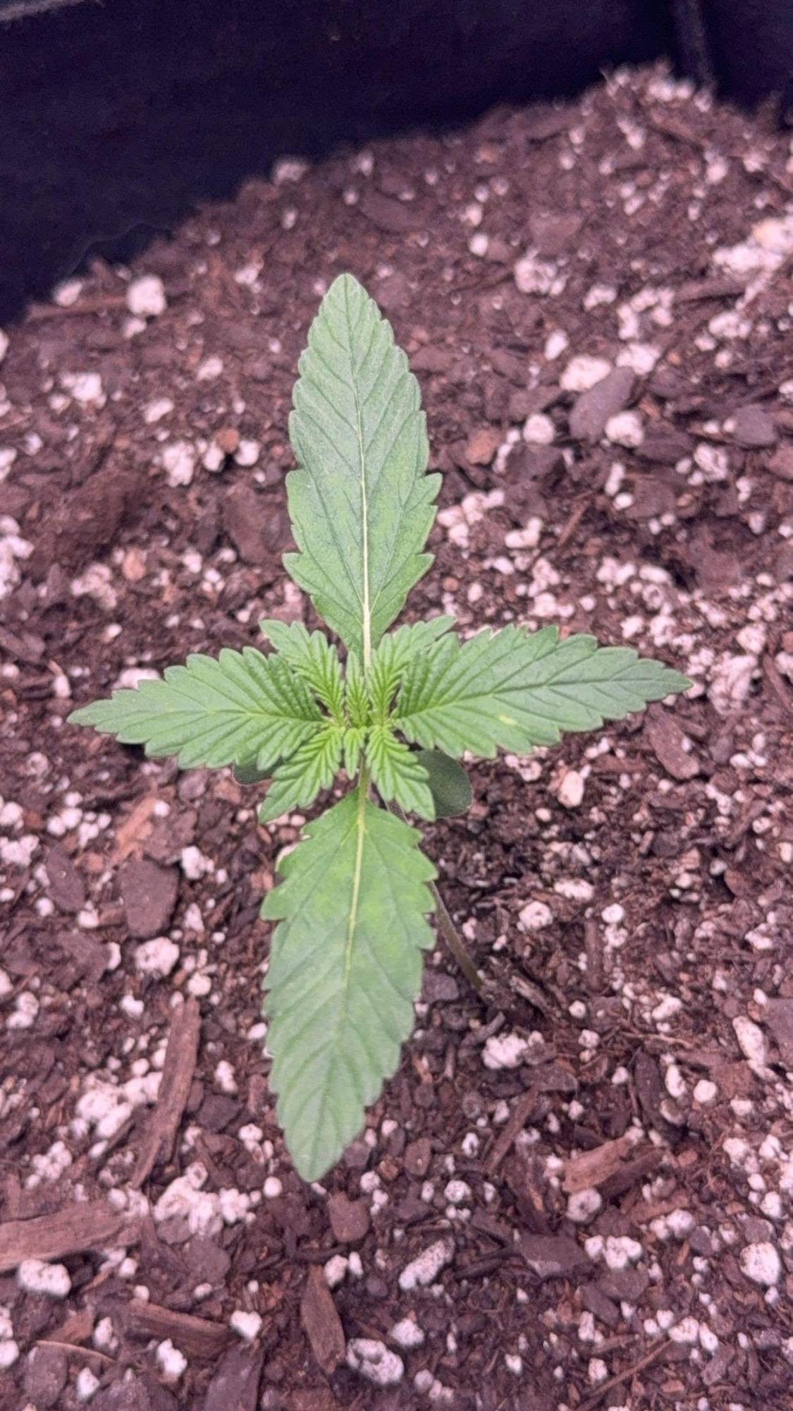 At 9 days, your seedling is really healthy (straight stem, green leaves, compact new shoots)