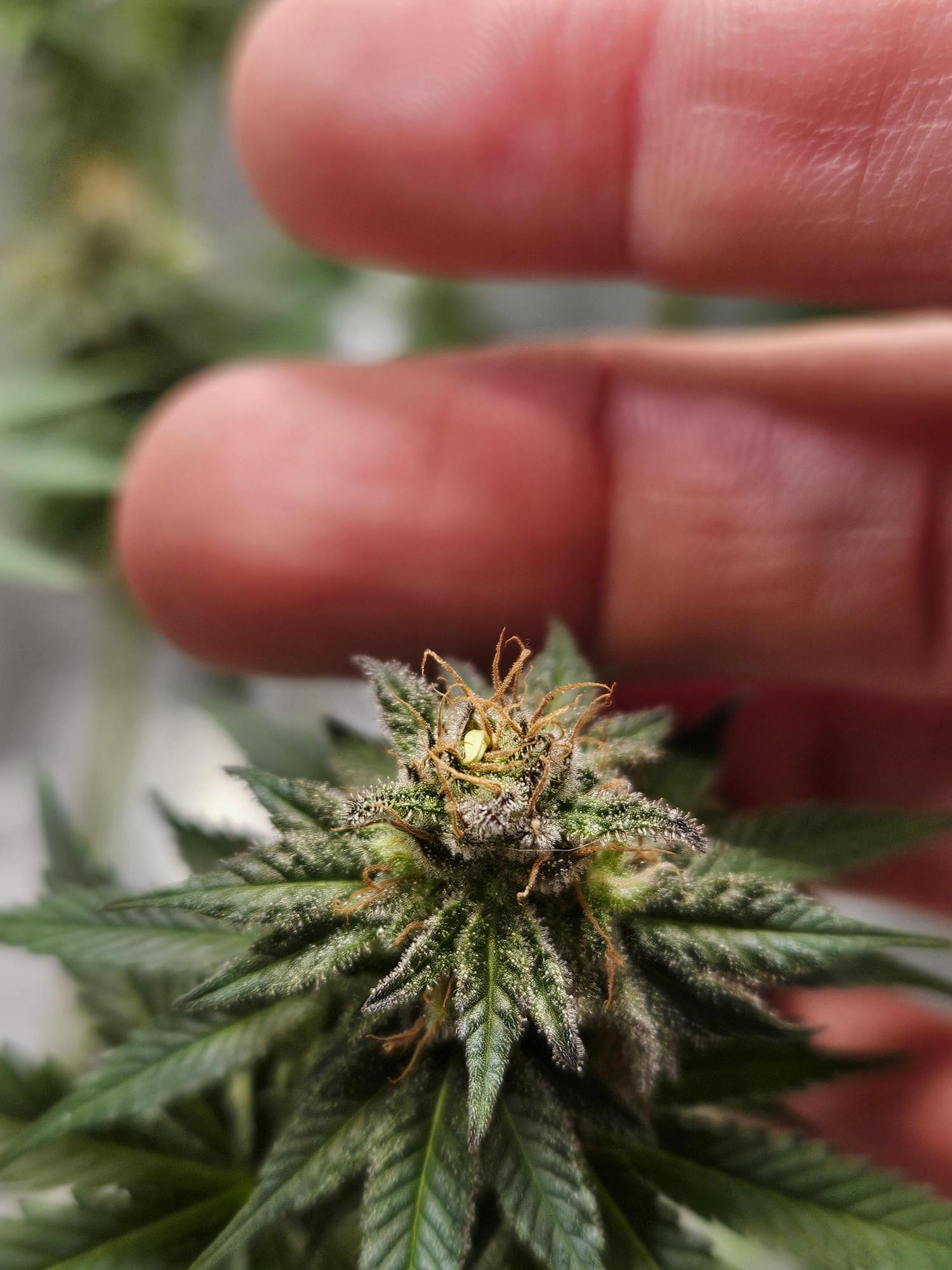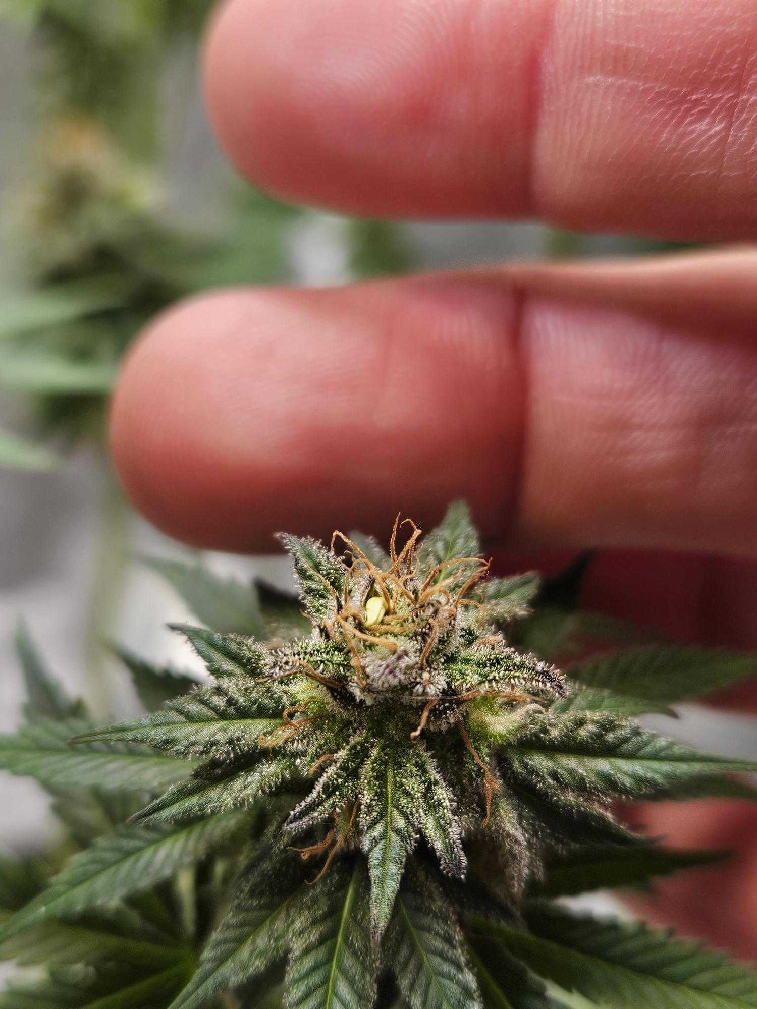 Yes, that's a Hermie. Up to you. You could just pick out the male parts and continue for a little longer, checking thoroughly daily for other male parts. You're so close to the end now I think at worst you may find 2-5 seeds in the plant somewhere during harvest,