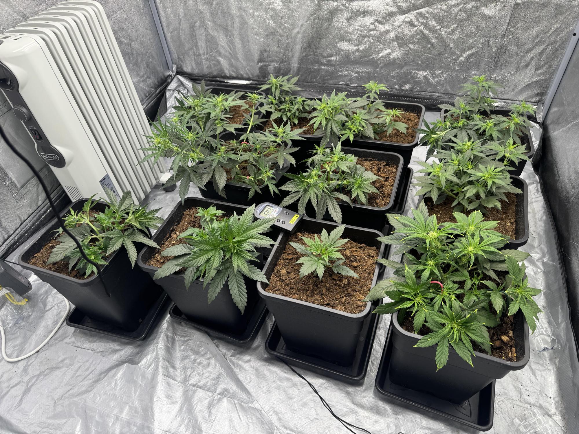 Don't look small, looks healthy and cared for. Its not a race unless you grow autos. Nothing you have done wrong, try not compare your work to that of others, focus on what you grow then next grow look to improve an area where you feel you could Improve. Everything looks tickety boo, good stuff. That's alot of plants for a new grower make sure to keep as detailed a diary as you can going forward incase you need assistance later in the grow it can help other growers alot with diagnosis.