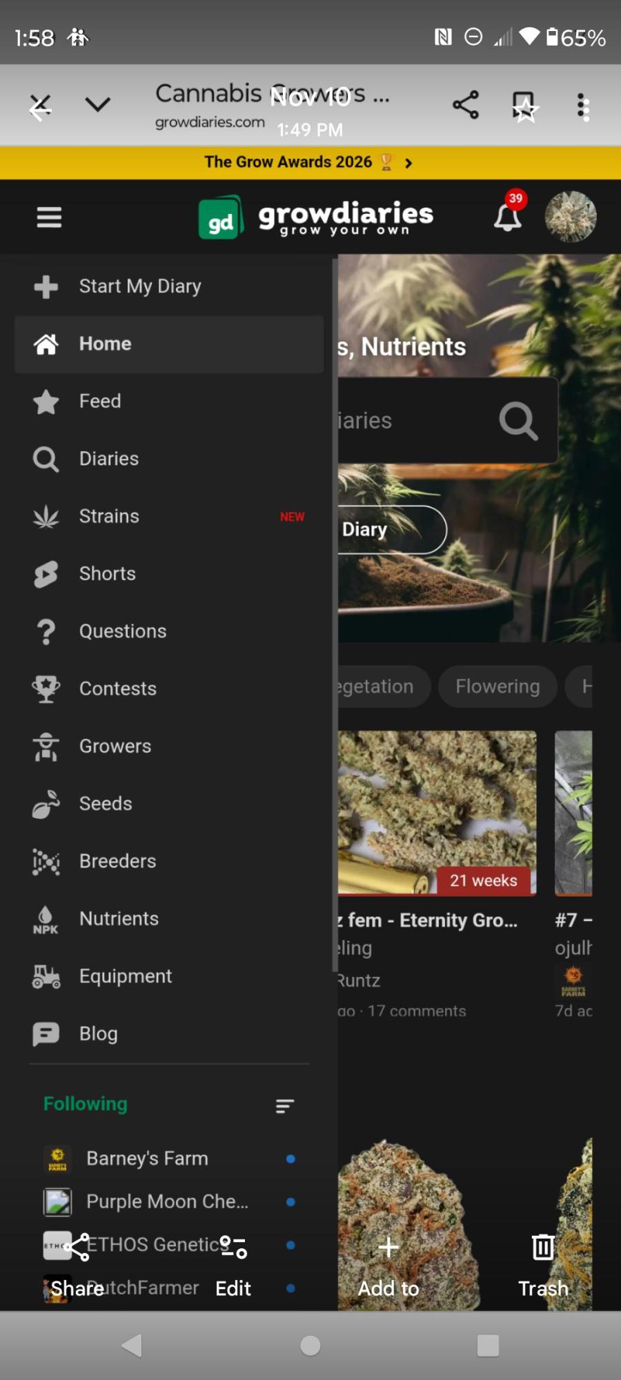 why can I only can get to my diaries by going into growers section and typing in Growyourh?