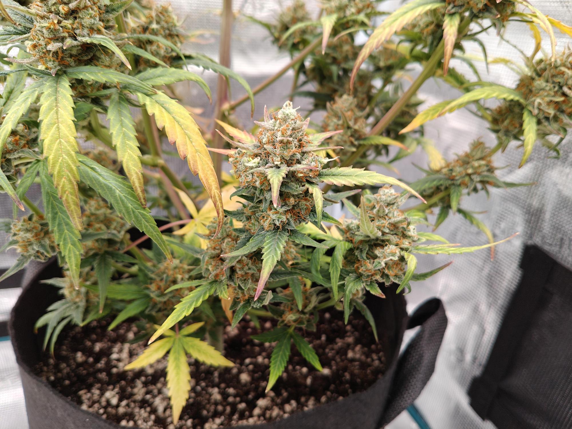 Six Shooter Auto, nearly there! Other 3 still take a bit longer (but same day germinated). I think day 86 now since seed in soil. Already started flushing this 5gallon grow bag. Much cloudy trichomes, but no amber yet. Around how long? Less then one week or longer? I keep watchin