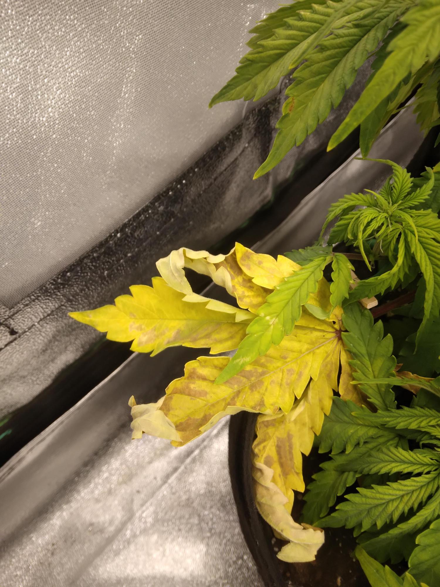 Lower-leaf yellowing at week 6 is very likely early nitrogen deficiency, especially since you stopped giving Bio-Grow 4 days ago. In soil, autos still need a small amount of nitrogen in mid-flower to keep the plant healthy. Your newer growth looks fine, so this isnāt toxicity or light stress. Iād reintroduce a light dose of Bio-Grow (1/4-1/2 strength) and the yellowing should slow down. Check your pH as well, because poor uptake can mimic deficiency.