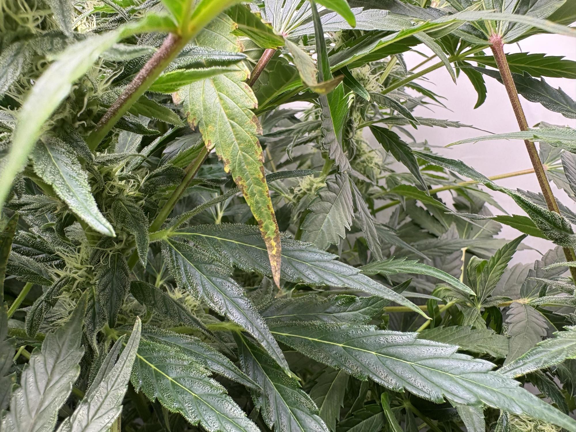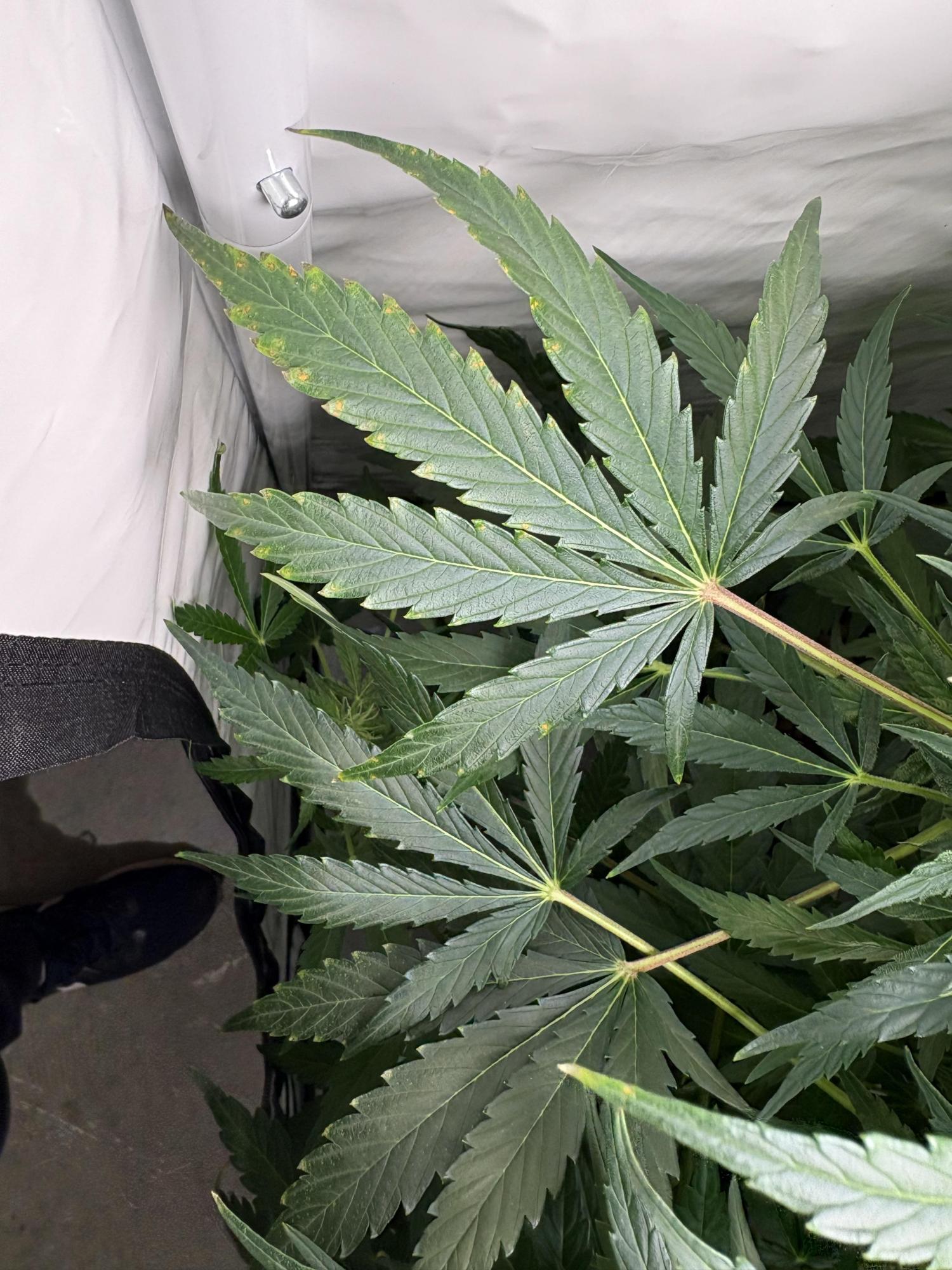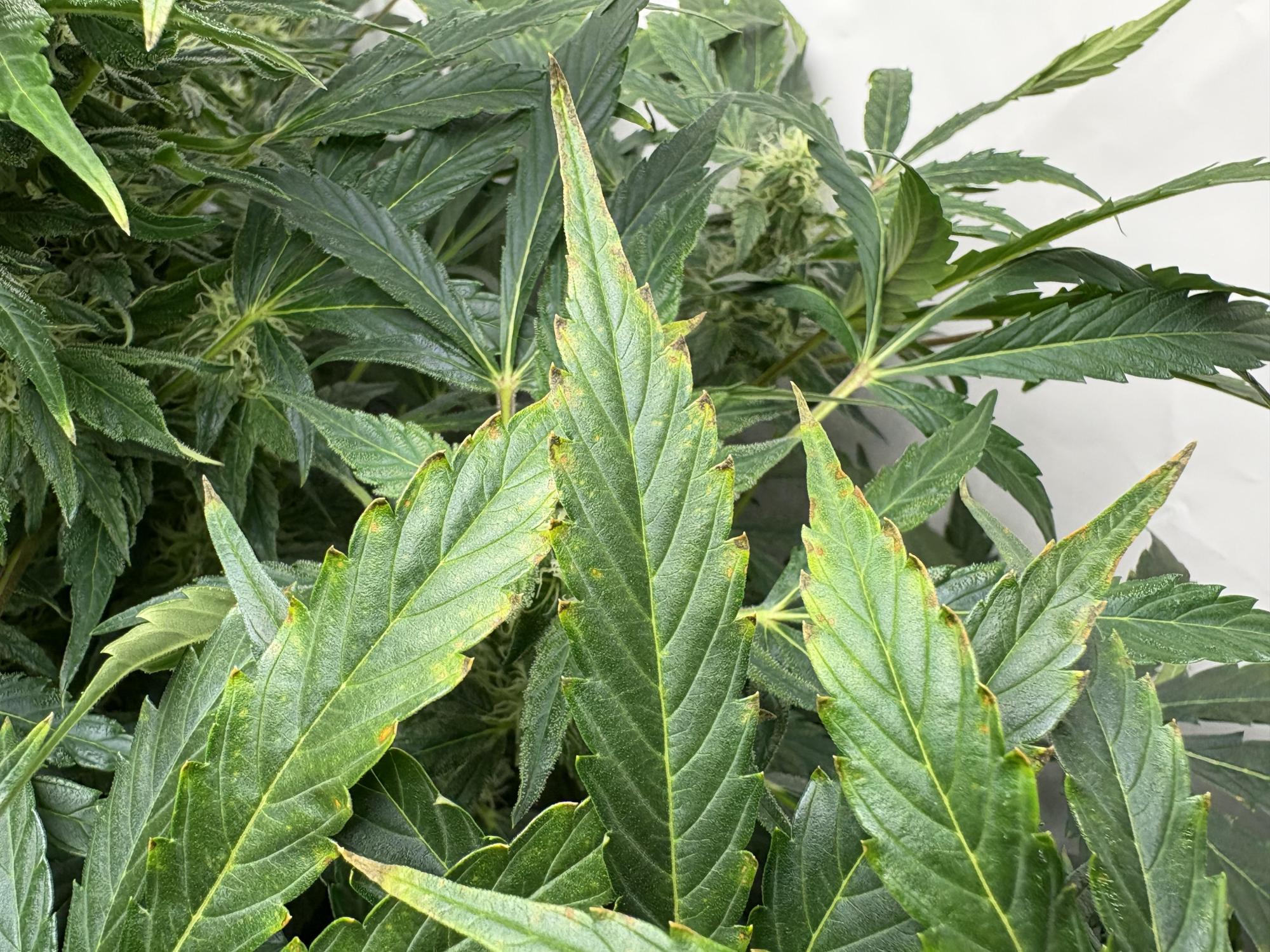 Hi guys, what do you think are these burns on the tips of the leaves? Can I be sure that they are burns due to excess nutrients? I'm eight weeks from seed, thanks bye
