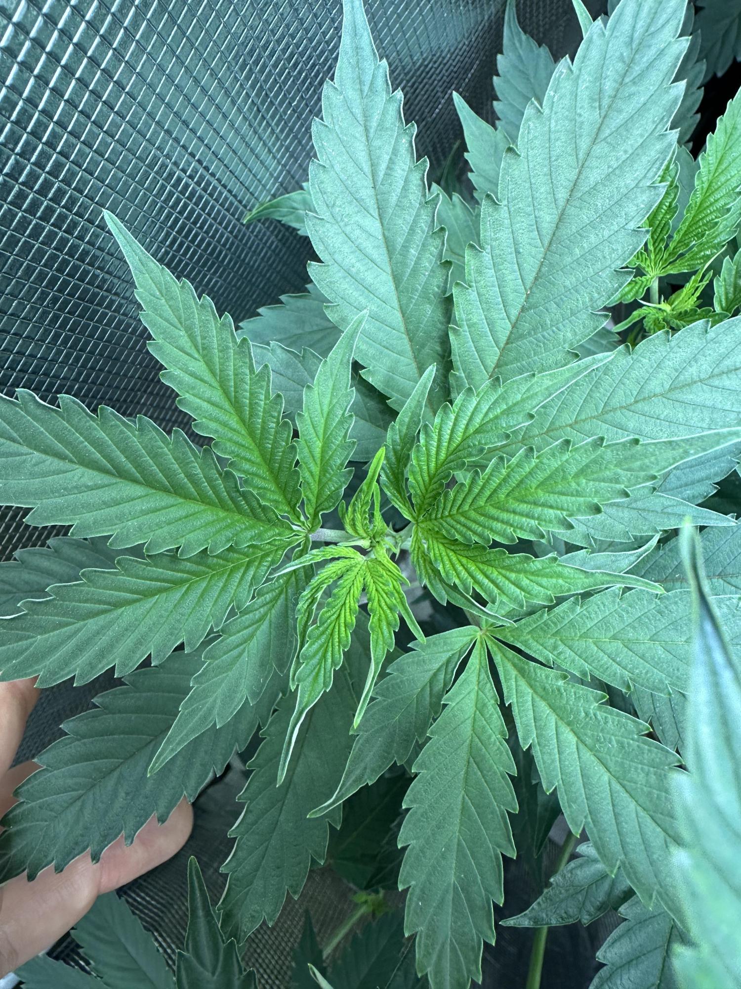 Mars8_8started grow question 1h ago Leafs are curling inward on new growth. It’s not exclusive to the tops. It’s only 2/4 plants. It’s still growing fine as it’s my tallest and biggest plants. I’ve adjusted my light down to 2/10 as my first fix and moved the fans around. Any suggestions?