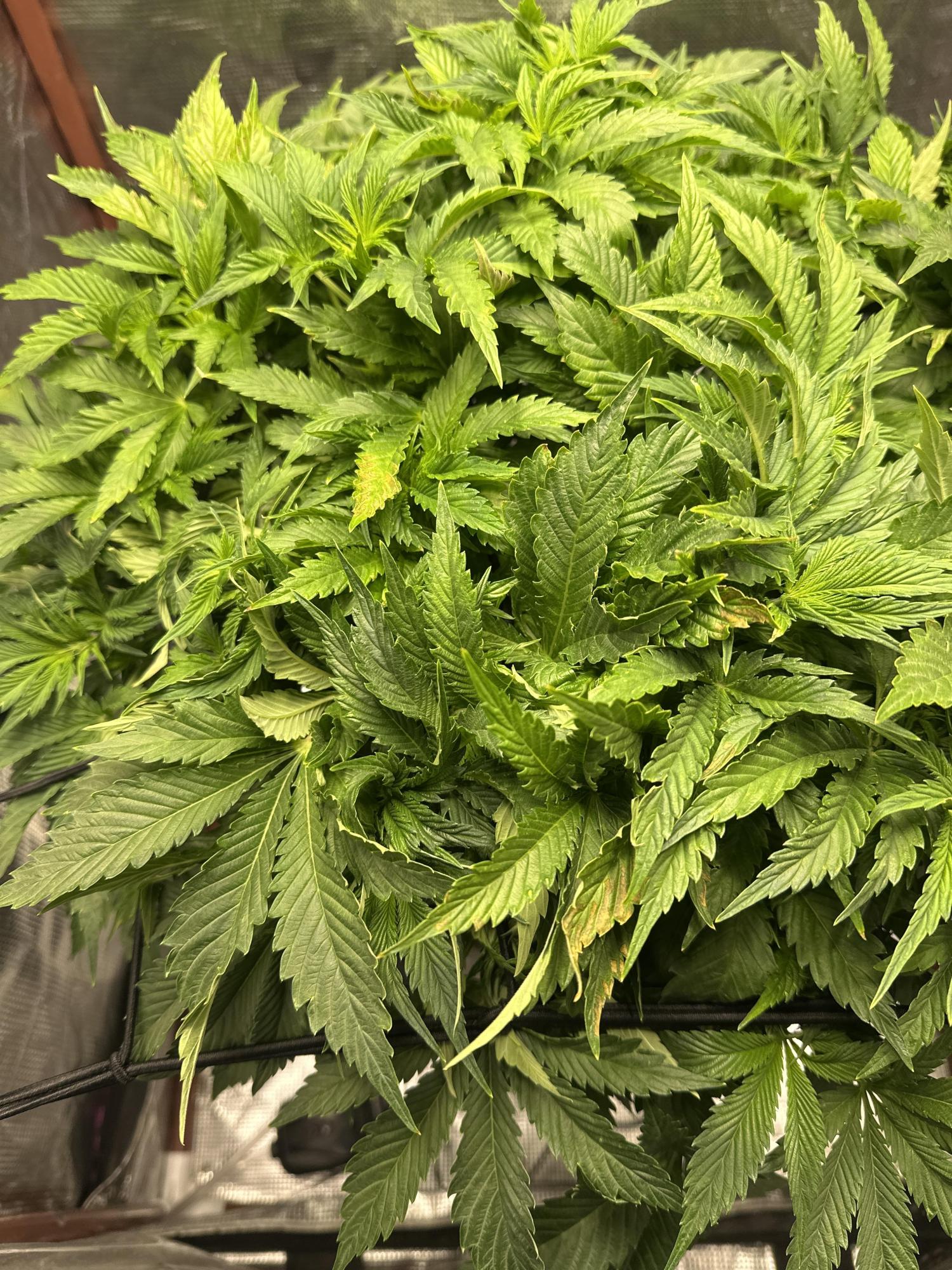 Hello, it looks a little like wind stress, probably because the plant is so bushy, right? You should definitely thin it out, and if necessary, don't point the fan directly and continuously at the plant, but slightly above it. This way, the gases produced during photosynthesis are removed and distributed.