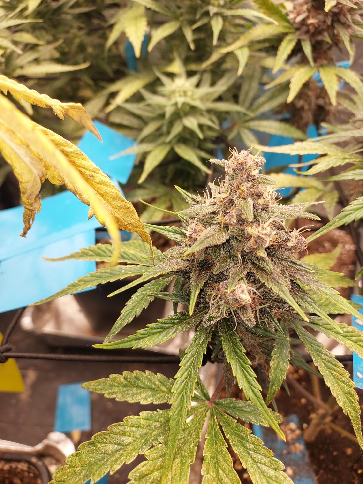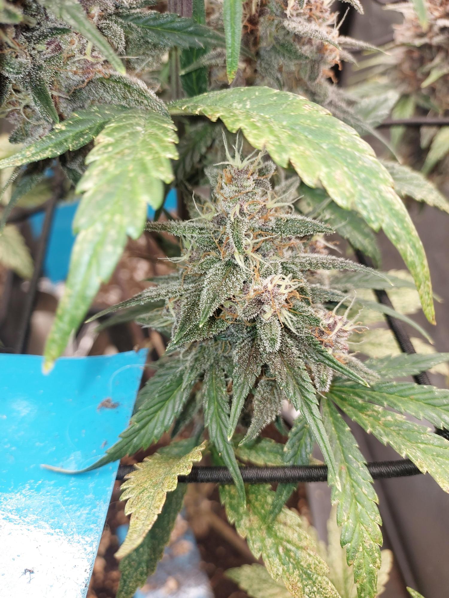 Wenn du keine Eile hast Gib ihr noch etwas Zeit. Ich sehe leider nicht gut die trichome diese sollte fast alle milchig sein und ein paar ambar Farbene und sehr wenig durchsichtige ist ideal. Du kannst auch nach den härchen gehen, diese sind noch ziemlich weiss bei dir ,diese sollten fast alle braun/orange sein. Und schau dir auch die Bud weiter unten an,da die oberen schneller reifen. Hoffe das hilft dir weiter. Viel erfolg